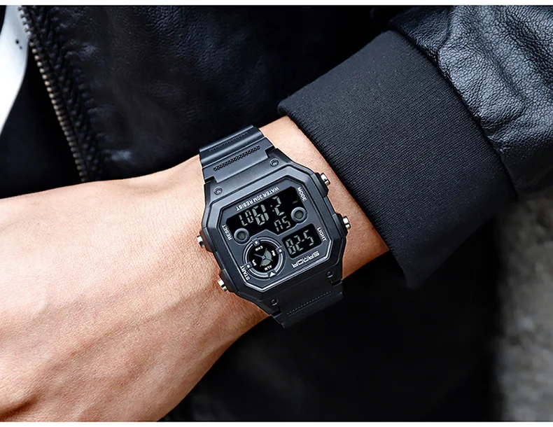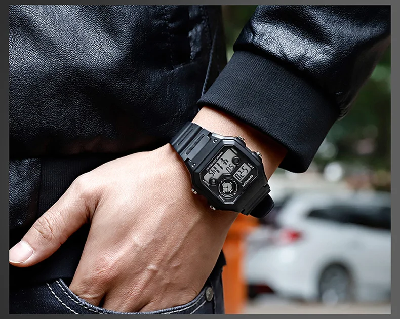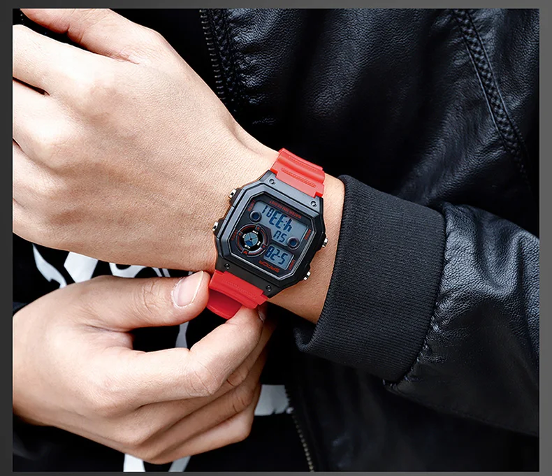 Часы Цифровые мужские, водонепроницаемые, квадратные, с подсветкой,...
