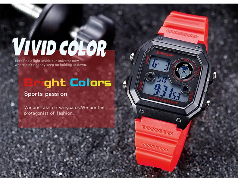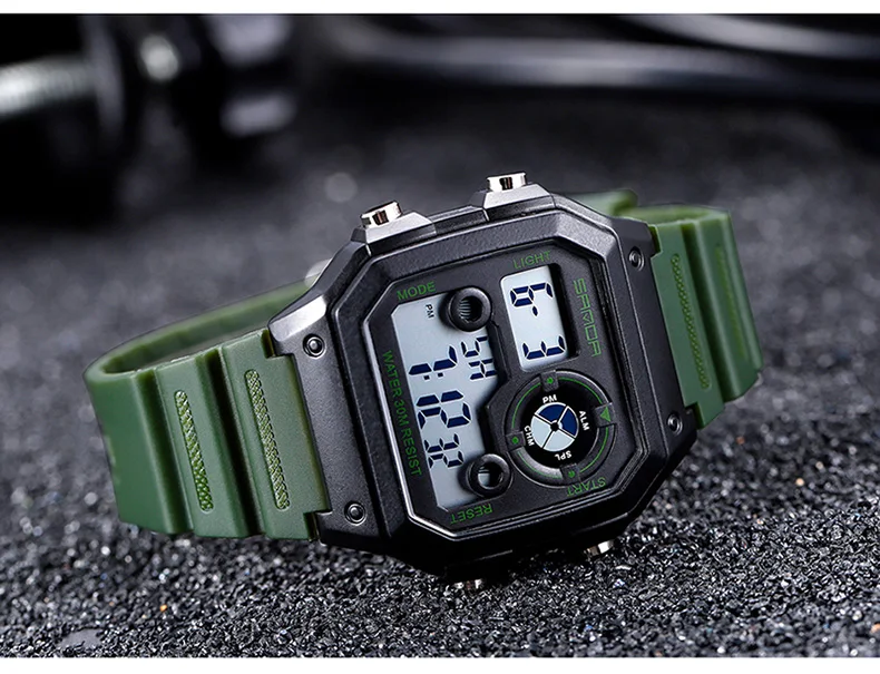 Ремешок для часов: Резина Водонепроницаемый: 3Bar Характеристики: секундомер, дата, календарь, хронограф, ударопрочный, светодиодный дисплей