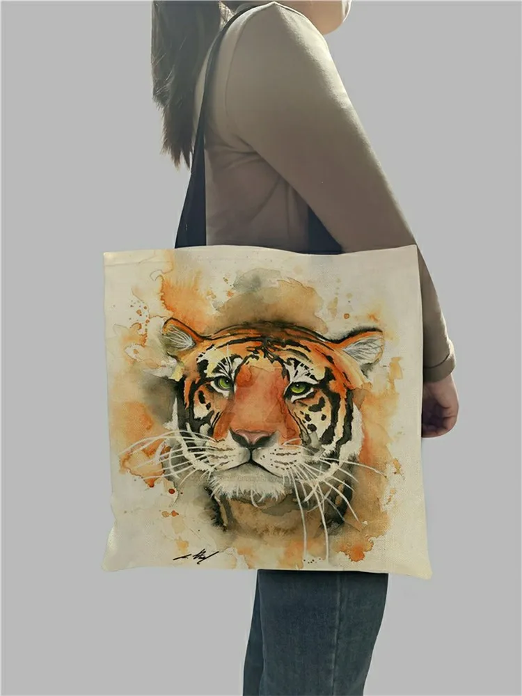 Оригинальные сумки с принтом тигра, женские повседневные сумки через плечо, экологически чистые многоразовые сумки для покупок, складные вместительные сумки SY0063