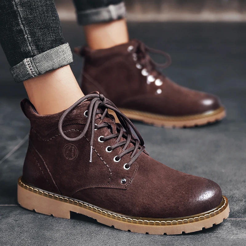 Мужские зимние ботинки из натуральной кожи, большие размеры 38-50