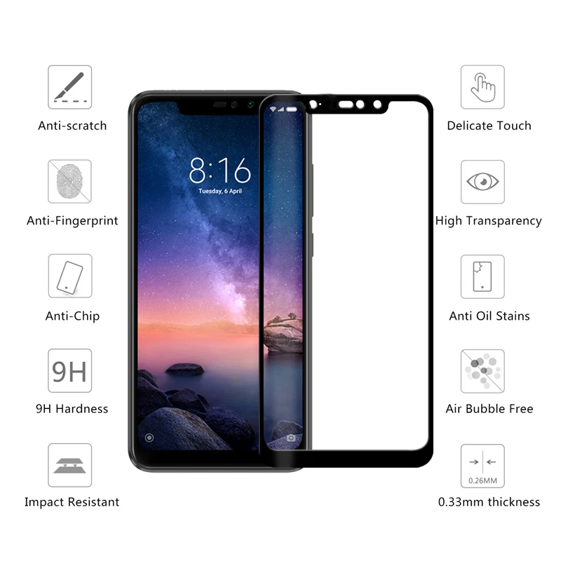 ThicknessProtective Film tempered glass for Xiomi Redmi Note 6 pro