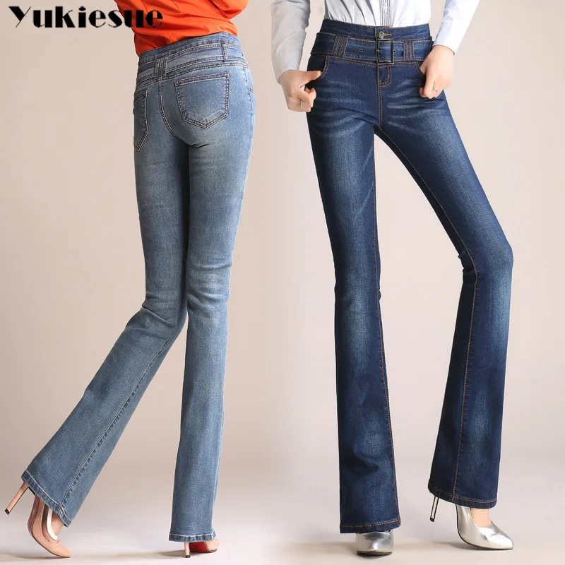 Размера плюс 26-33 скинни 2019 новые осенние расклешенные синие джинсы женские с высокой талией расклешенные брюки женские брюки джинсы
