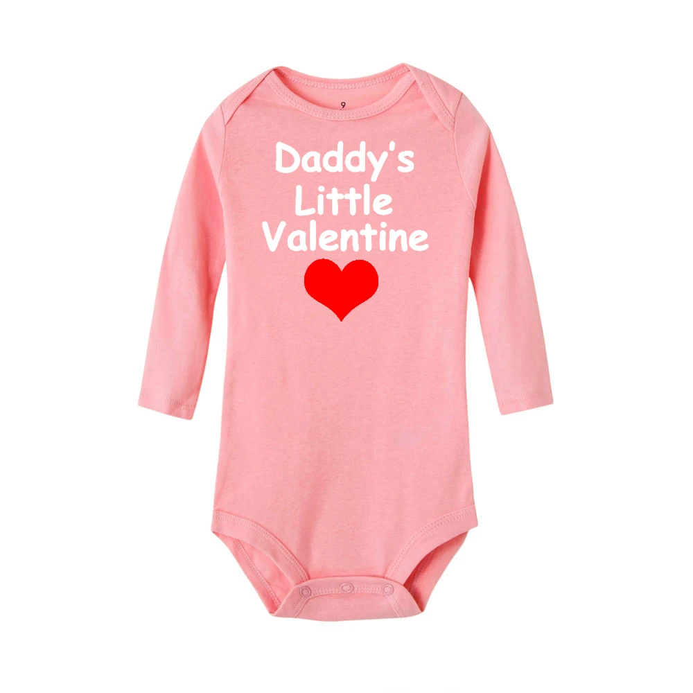 Одежда для новорожденных; Комбинезон с принтом Daddy's Little ко Дню Святого Валентина с принтом Забавный детский комбинезон для маленьких девочек, модная куртка с длинными рукавами для малышей, одежда