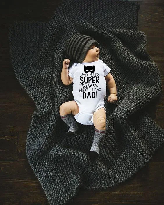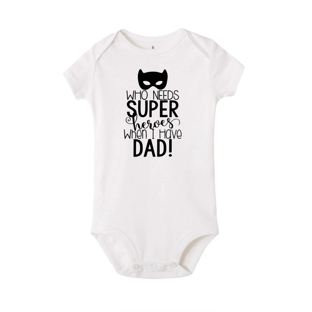 Одежда для новорожденных с супергероями, когда у меня есть папа, одежда с коротким рукавом для девочек и мальчиков, комбинезоны, белые костюмы