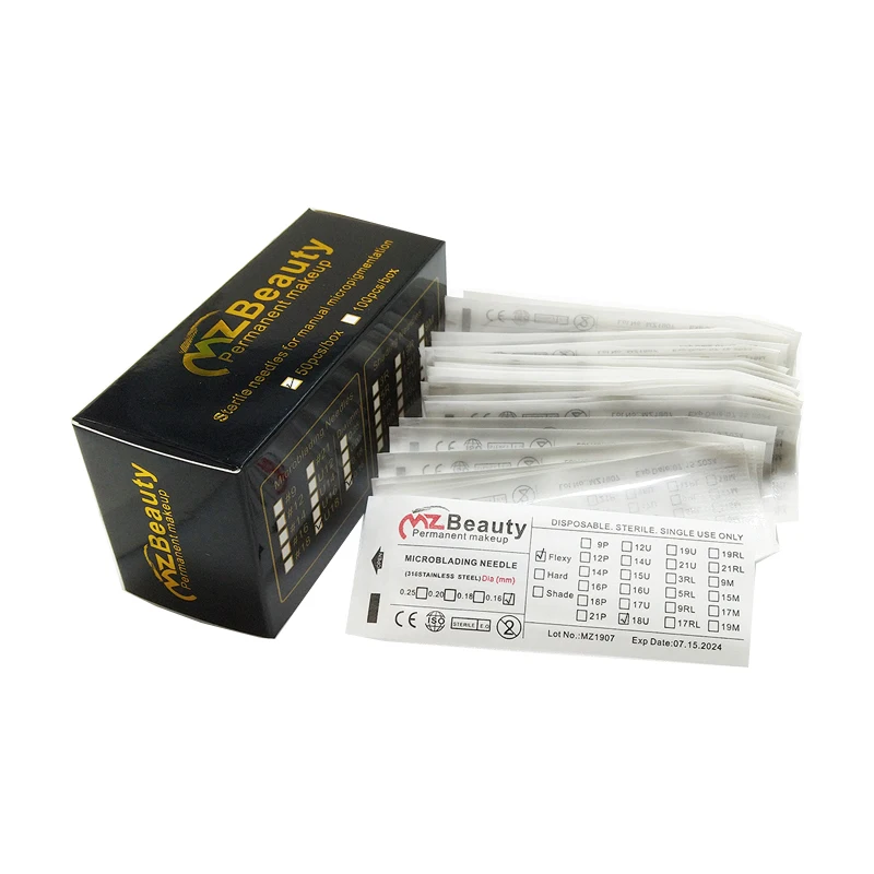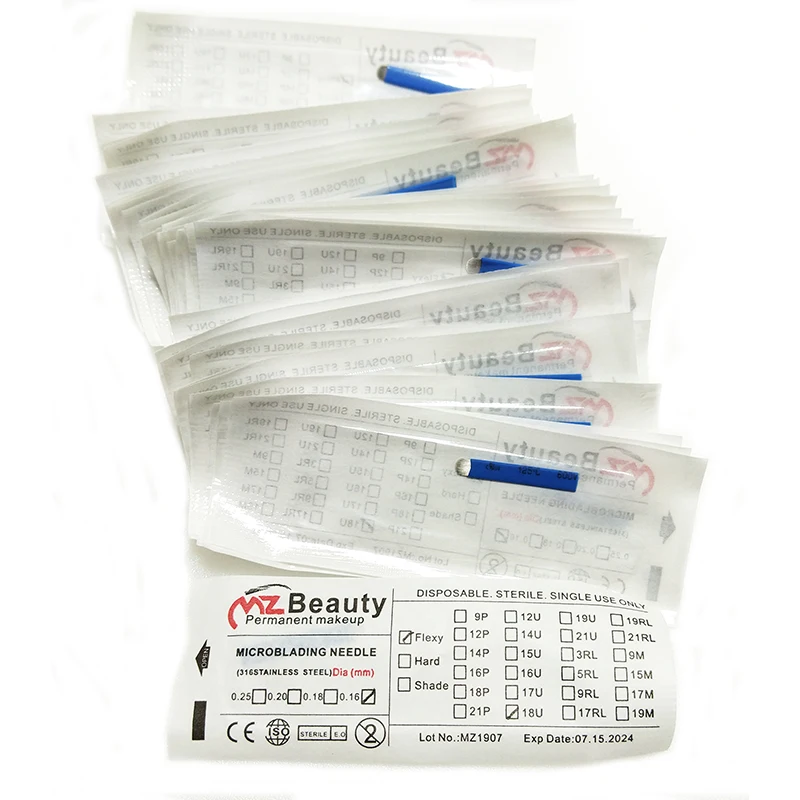 Иглы для микроблейдинга MZ Beauty 0,16 мм Nano Blade U-образная U18 Flexi игла для татуировки 1. Каждый с лотом №. Дата Exp 2. Упаковка в бумажную коробку