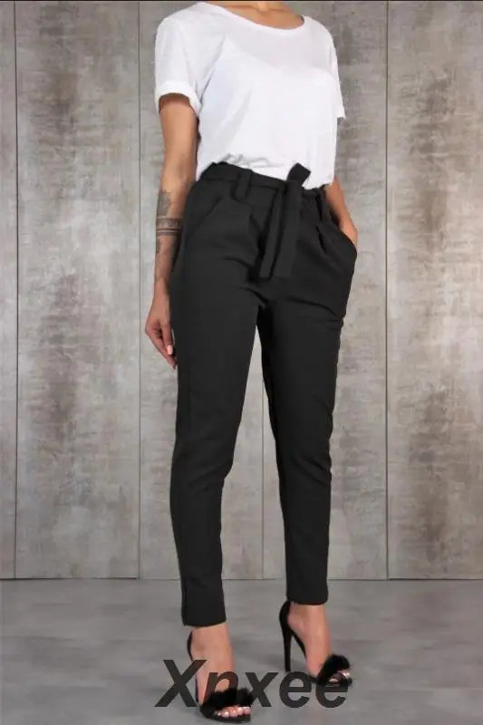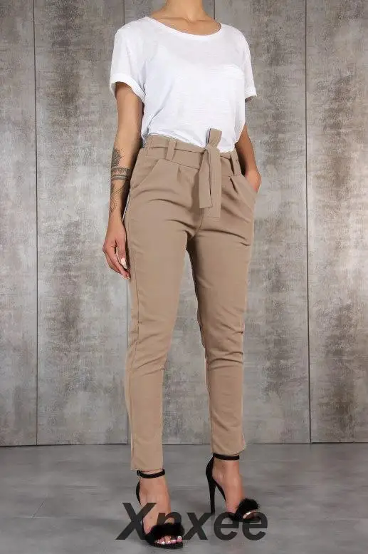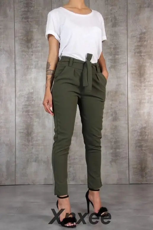 Повседневные облегающие шифоновые тонкие брюки для женщин с высокой талией черные Хаки зеленые брюки Xnxee