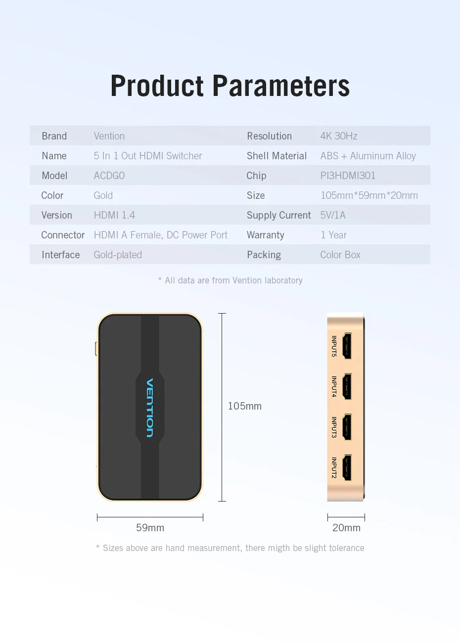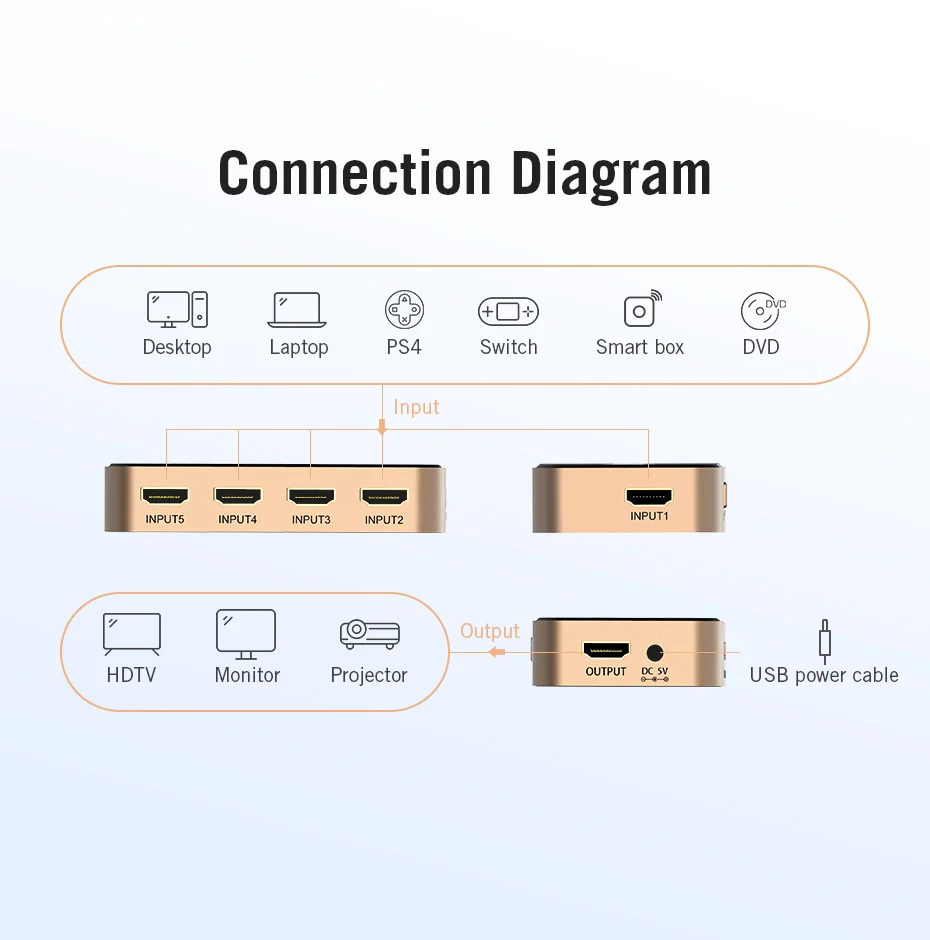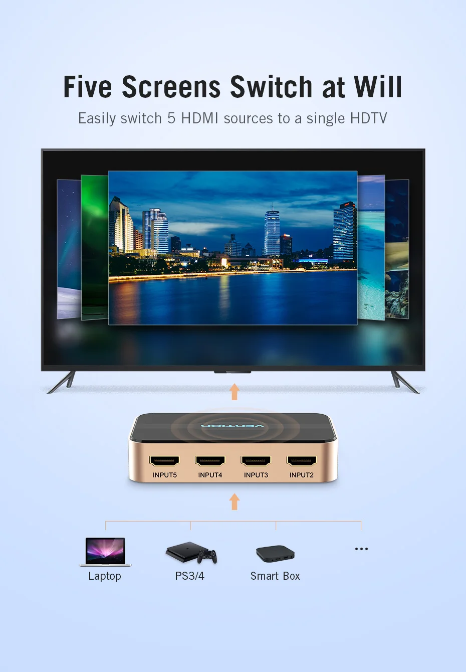 Адаптер-переходник Vention HDMI переключатель с пультом дистанционного управления 5 Порты и разъёмы s 4K 3D 5x1 Разделитель с мультимедийным интерфейсом высокой четкости для Mi Box PS4 Nintendo переключатель PC 5 в 1 из 3 Порты и разъёмы переключатель HDMI сплиттер