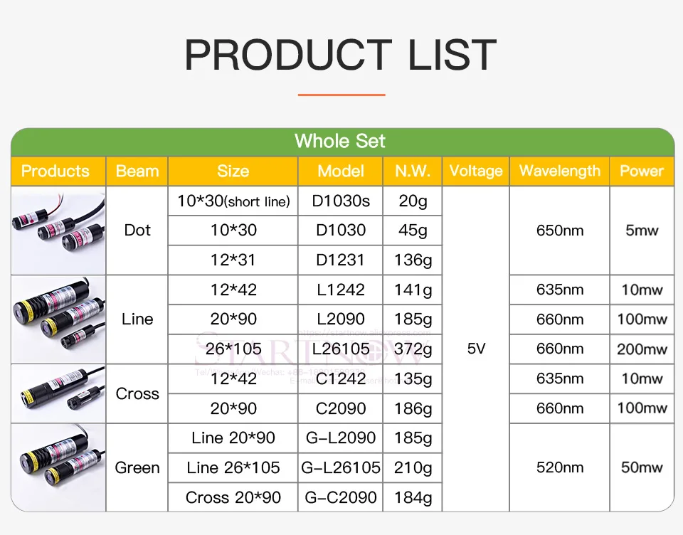 Лазерный диодный модуль, Фокусируемый луч, перекрестный лазерный по...