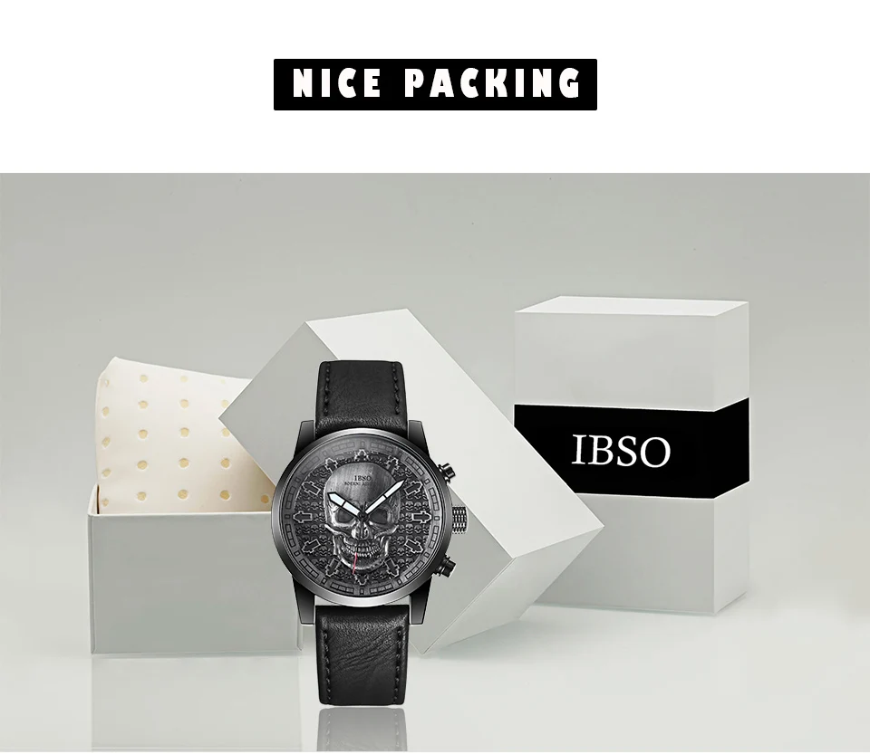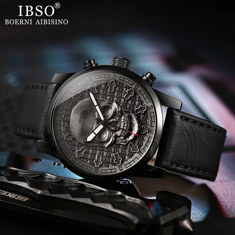Мужские кварцевые часы IBSO, готические наручные часы в стиле панк, 2021