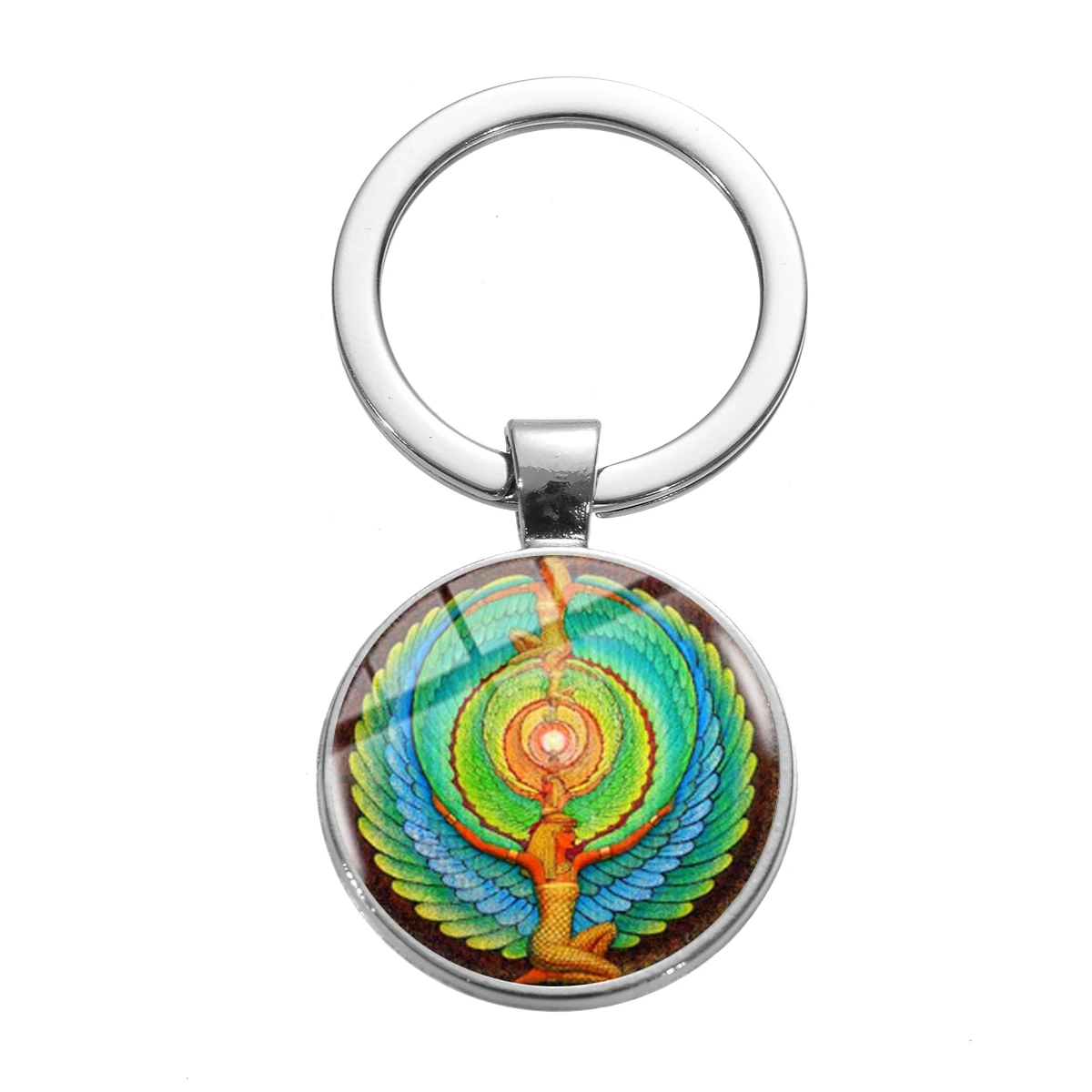 Брелок для ключей со стеклянным кабошоном и подвеской из сплава, му...
