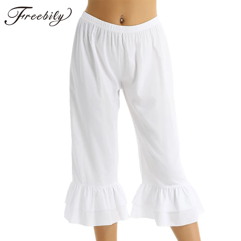 Женские винтажные брюки с эластичным поясом и оборками на подоле, повседневные брюки-шаровары в стиле ретро, костюм эпохи викторианской эпохи, женские свободные расклешенные брюки