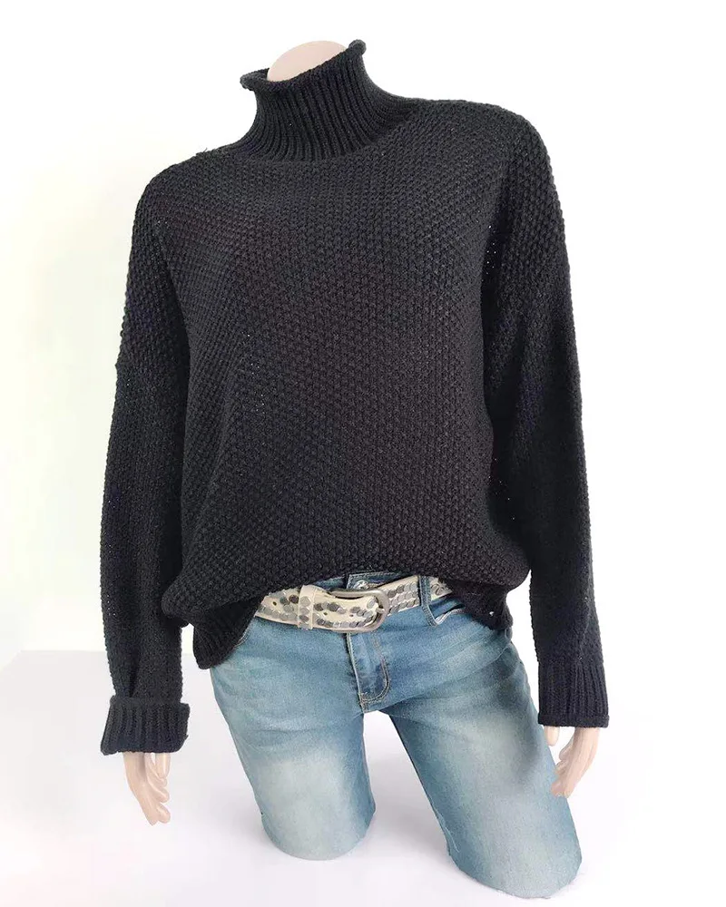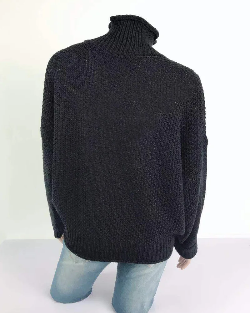 Женский зимний свитер с высоким воротником, модный Свободный вязаный пуловер с объемными краями и рукавами летучая мышь, Blusa De Frio Feminina Ez *
