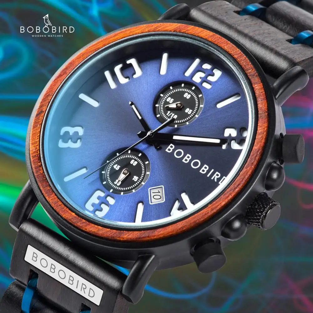 Часы наручные BOBO BIRD мужские с деревянным корпусом, водонепроницаемые светящиеся армейские, подарочная коробка