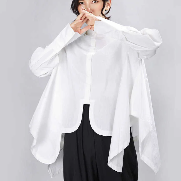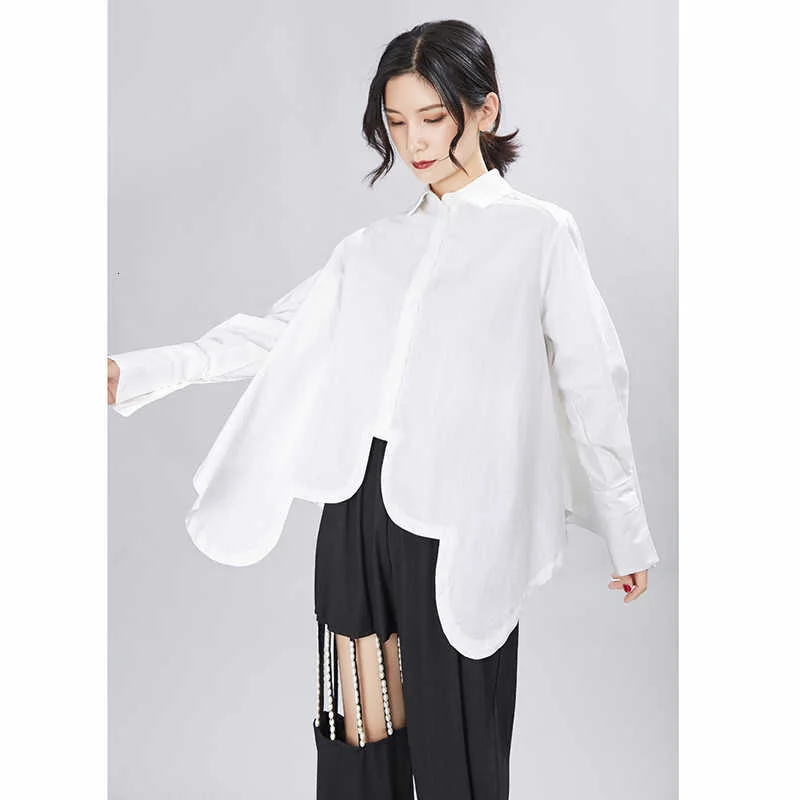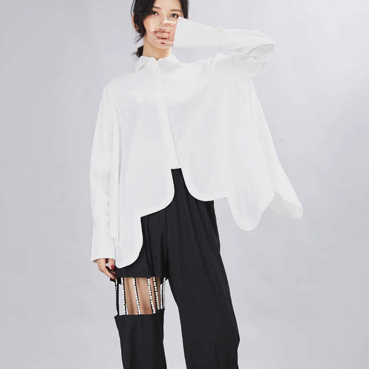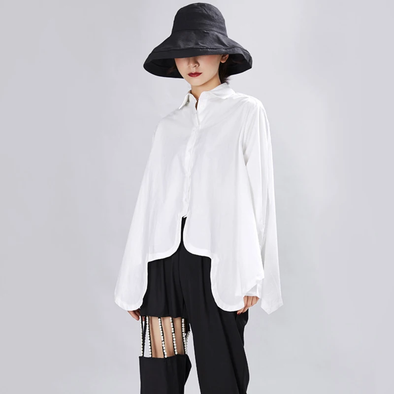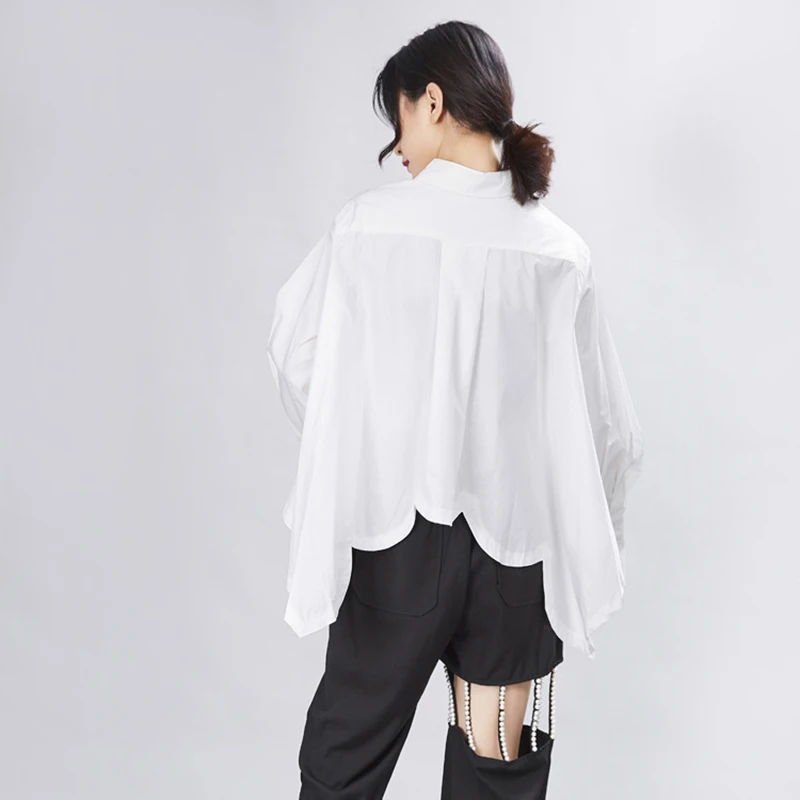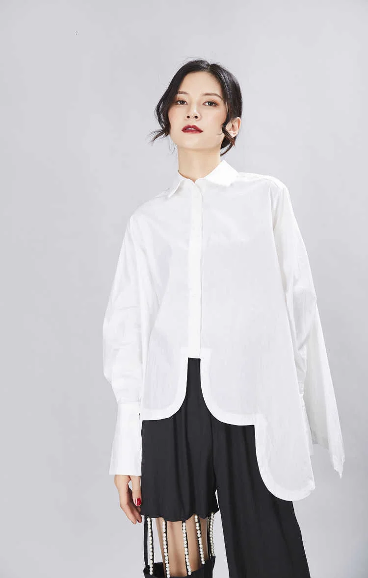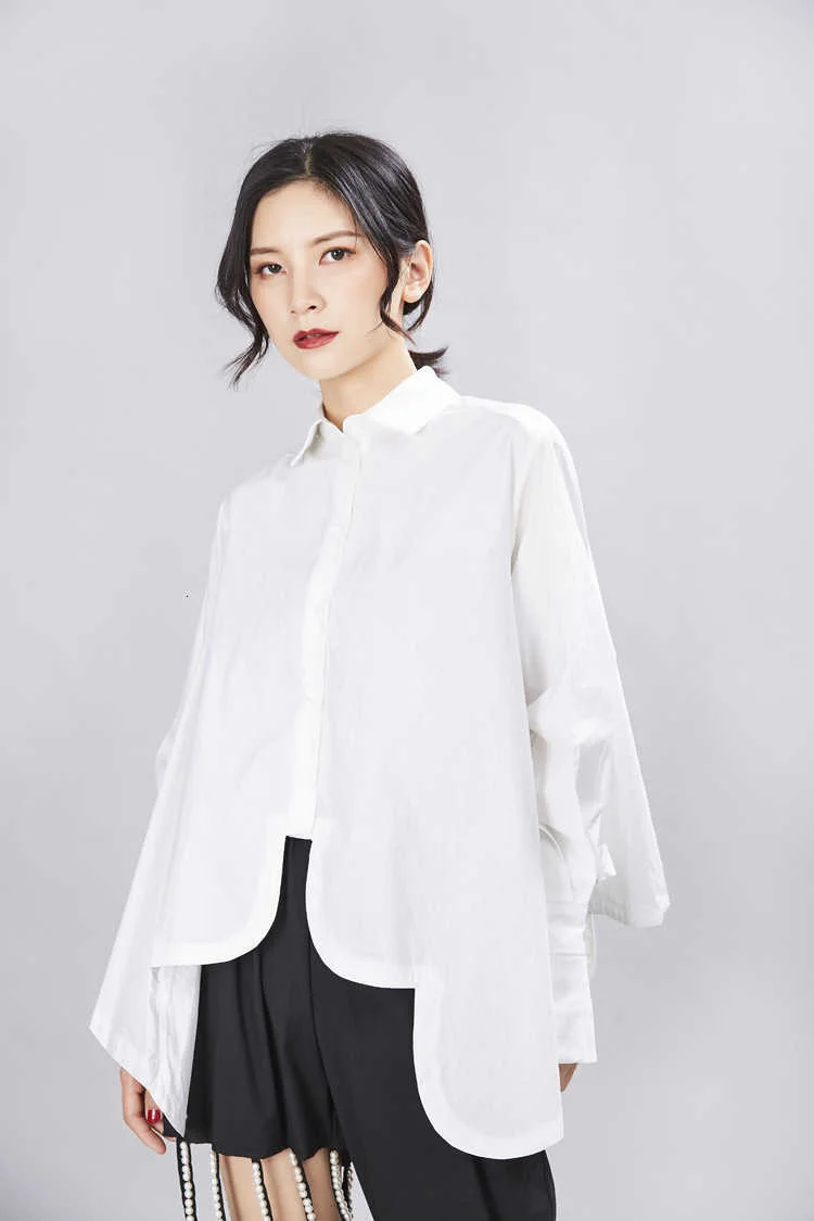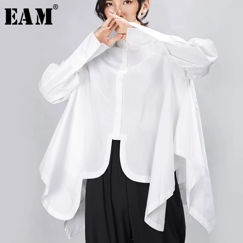 EAM Женская плиссированная Асимметричная блузка большого размера, новая свободная рубашка с длинными рукавами и отворотом, модная весенне-осенняя 2022 1A332