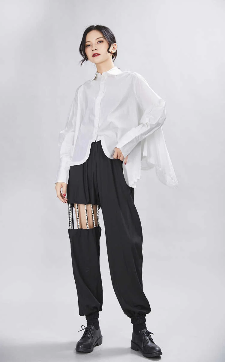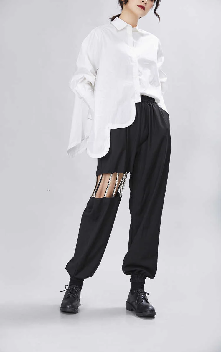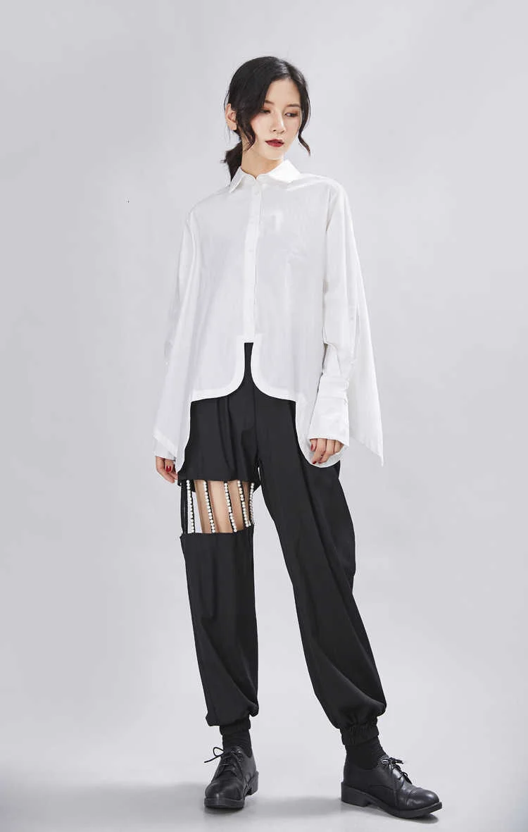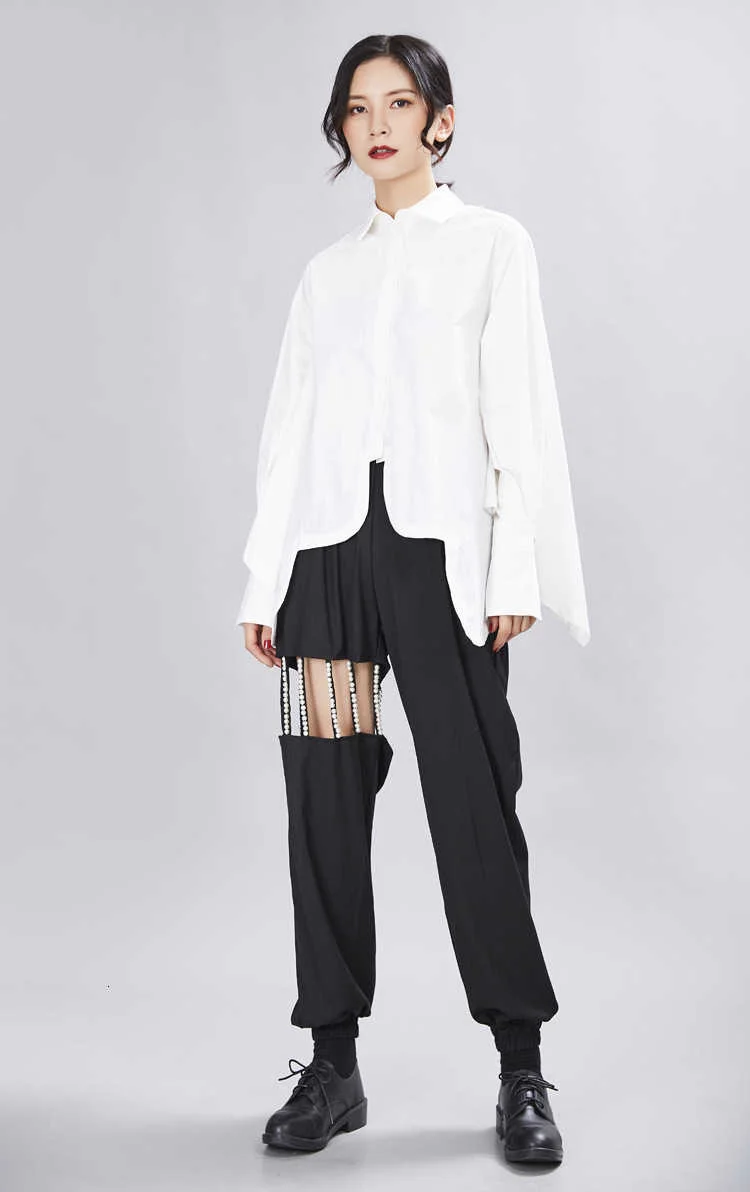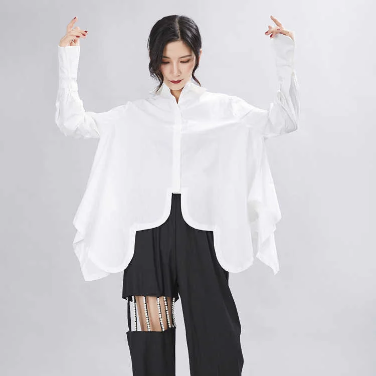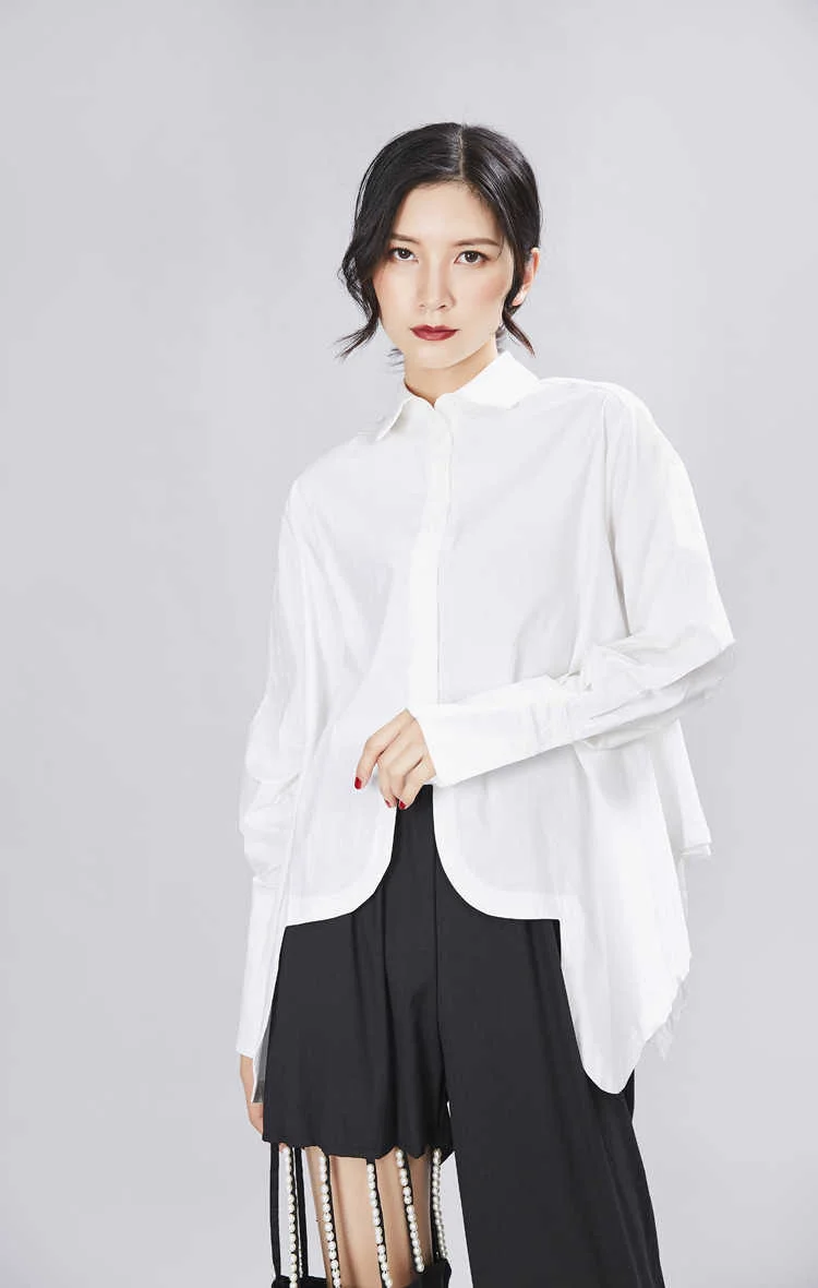 EAM Женская плиссированная Асимметричная блузка большого размера, новая свободная рубашка с длинными рукавами и отворотом, модная весенне-осенняя 2022 1A332