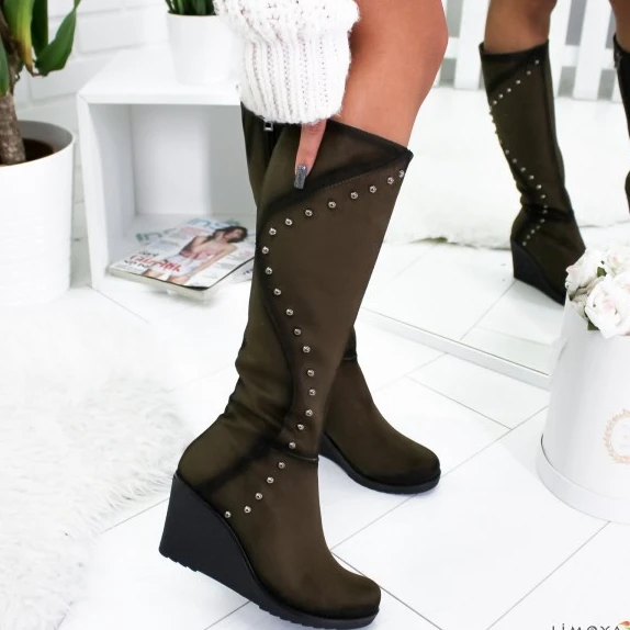Сапоги на молнии; женские сапоги до колена с заклепками; сапоги на платформе и высоком каблуке; пикантная женская обувь; Botas mujer bota Feminina