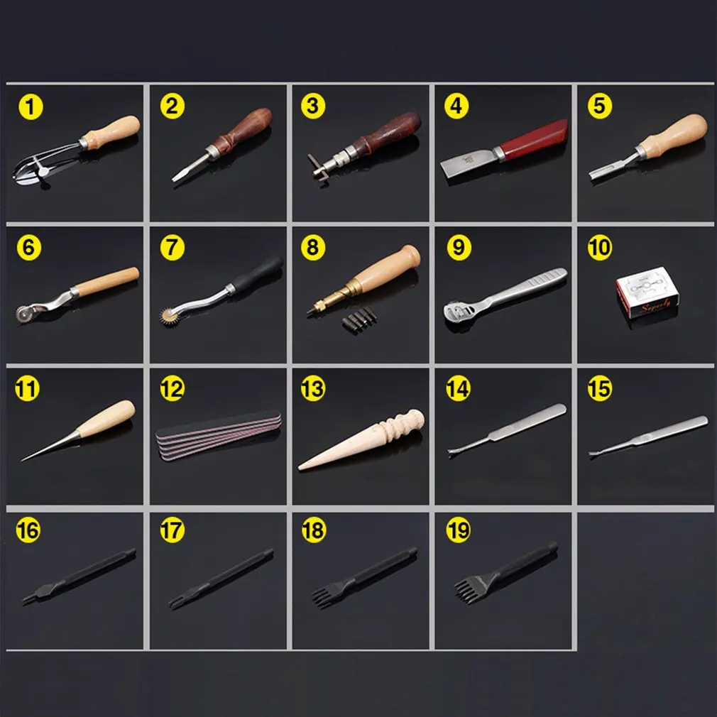 Набор инструментов для кожевенного ремесла, набор из 18 предметов для шитья и резьбы по коже, дырокол, седло, аксессуары сделай сам для работы с кожей