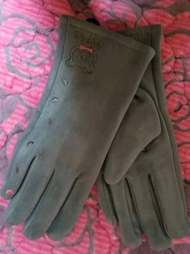 Варежки женские зимние из замши и кожи, с вышивкой в виде кота