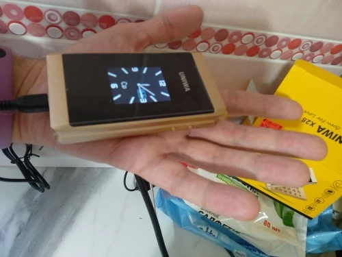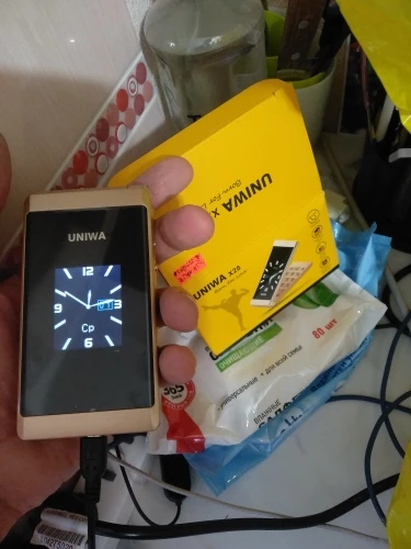 Очень довольна покупкой,боялась что телефон будет маленький,а нет,реально был большой,как раз для бабушки. Сначало не включался,а потом прочитала,оказывается надо снять изоленту возле питания,убрали и заработал.Часы так же показывает на передней стороне крышки. Классный телефон,для пенсионеров самое то