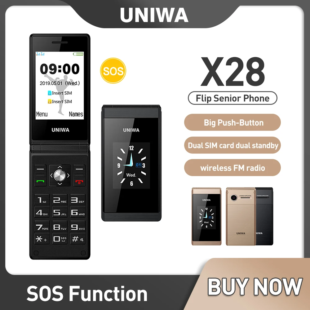 Телефон-раскладушка UNIWA X28, мобильный телефон GSM, 2 Sim, FM, русская и иврит раскладная клавиатура