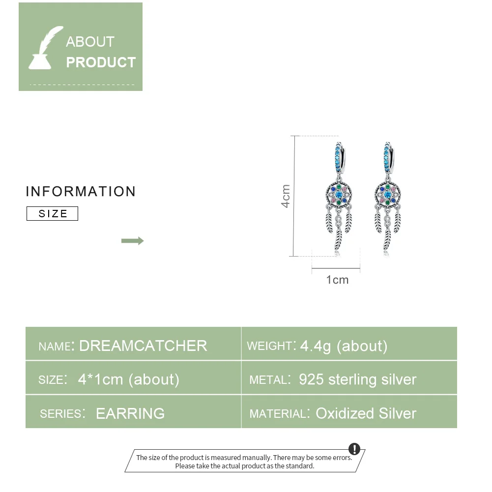Серьги-подвески женские из серебра 925 пробы в стиле Ловец снов