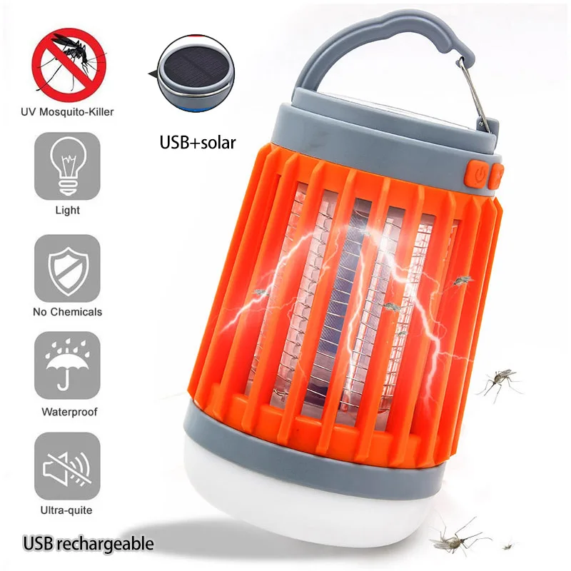 УФ Ночной светильник, лампа-убийца от комаров, портативный насекомый-убийца, ловушка для комаров, фонарь для использования в помещении/на открытом воздухе, USB зарядка от солнечных лучей