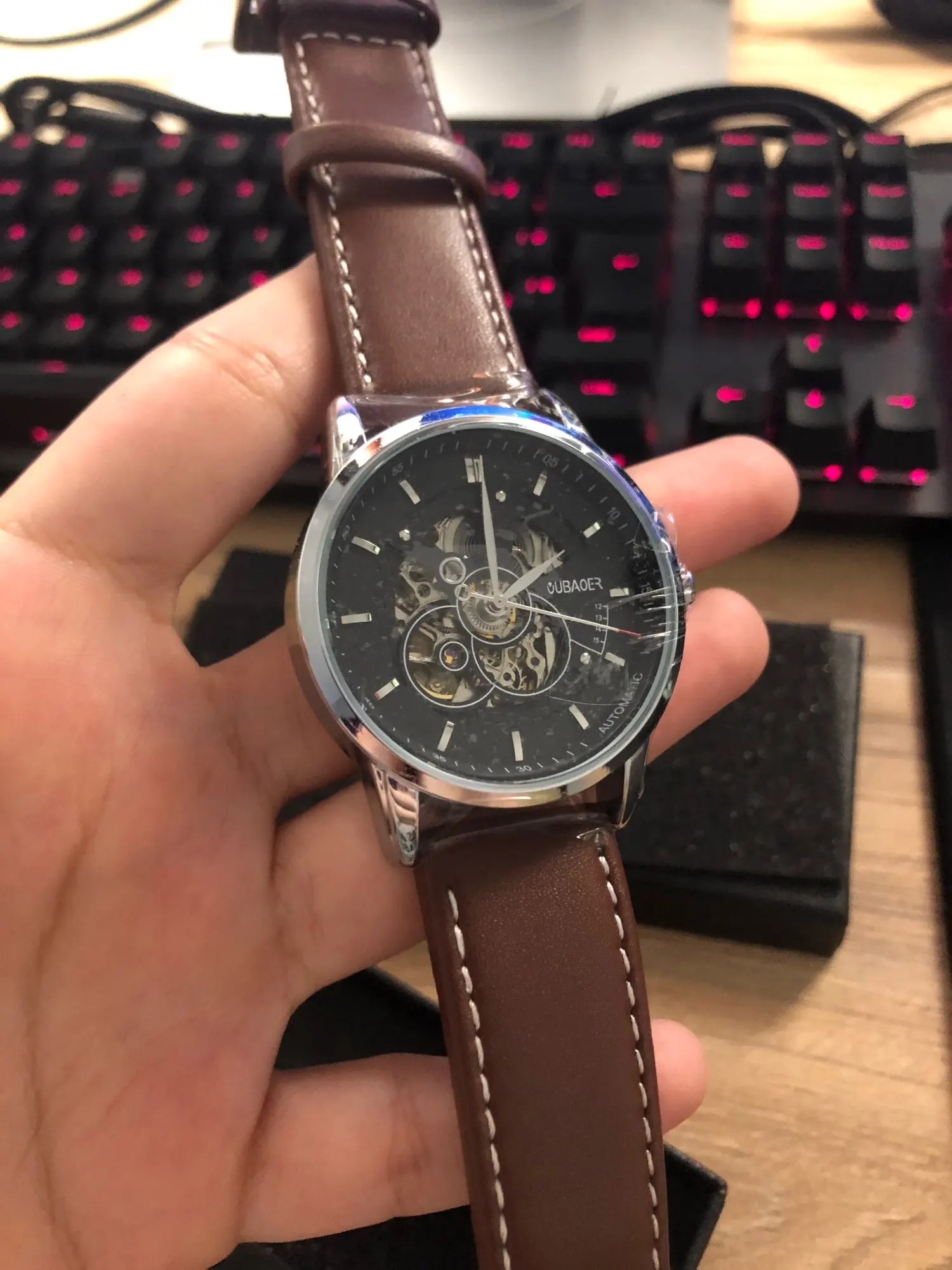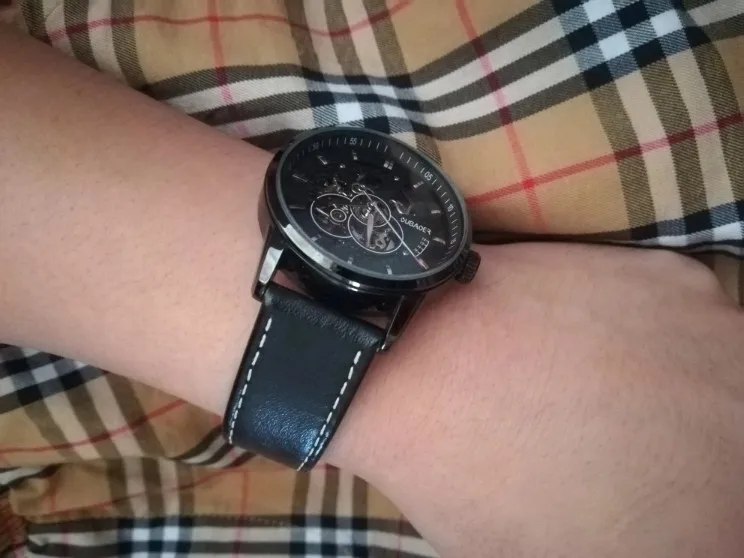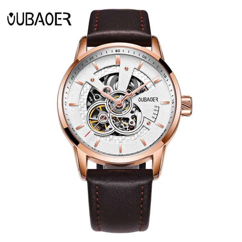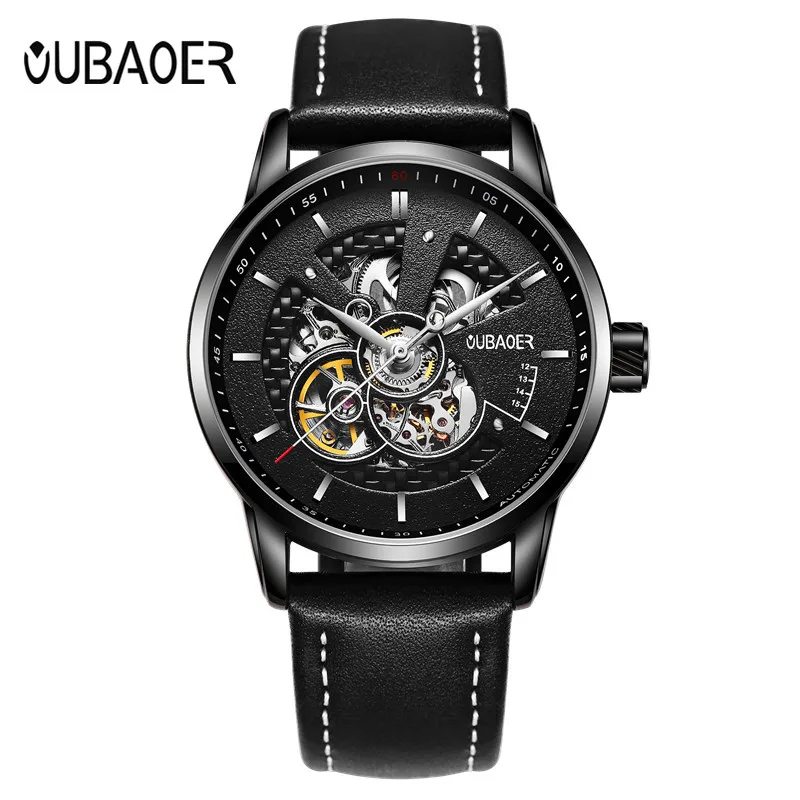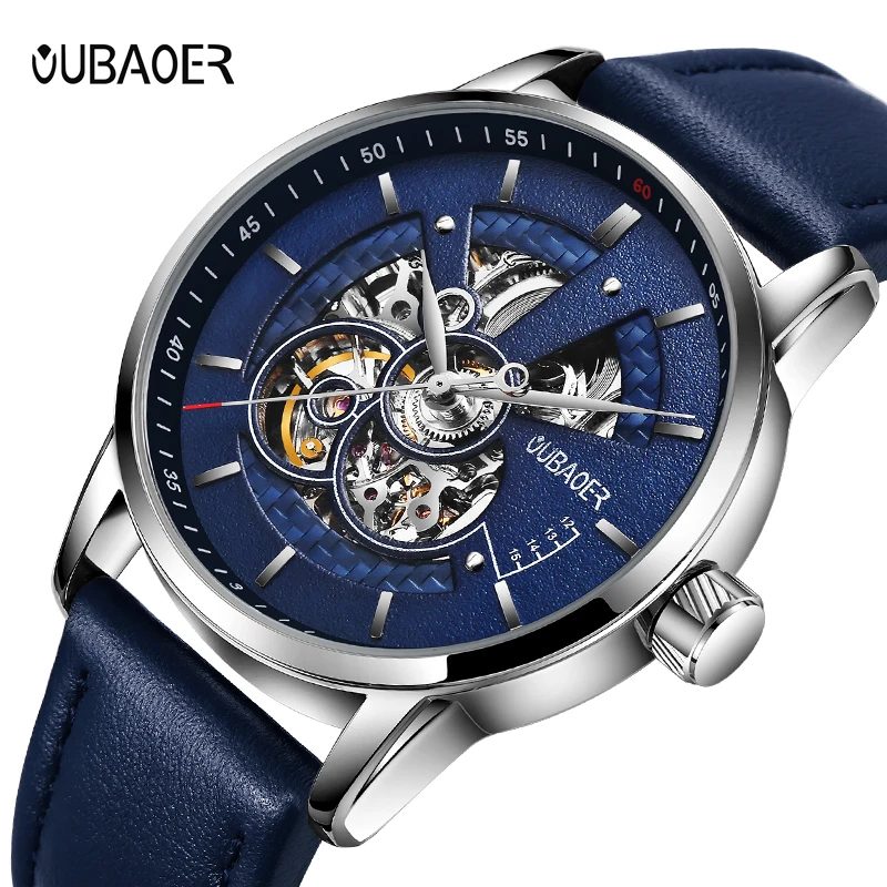 Часы OUBAOER Мужские автоматические механические, деловые, с кожаным ремешком, 2019