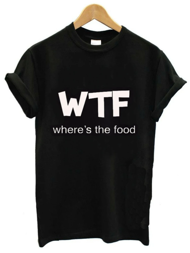 Футболка WTF с надписью где еда, Женская свободная футболка с коротким рукавом и круглым вырезом, женская летняя модная футболка, топы