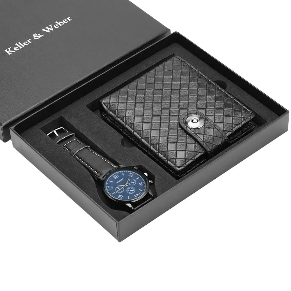 Feature 4men watch+wallet luxury present gift for boyfriend