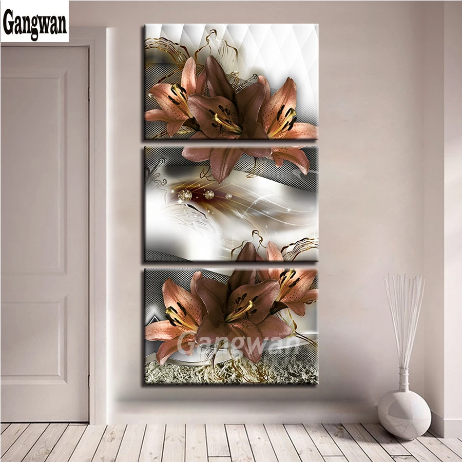 Украшение для прихожей, 3 предмета, лилии, цветы, модульная Алмазная картина, мозаика, стразы, картины, для гостиной, алмазная вышивка