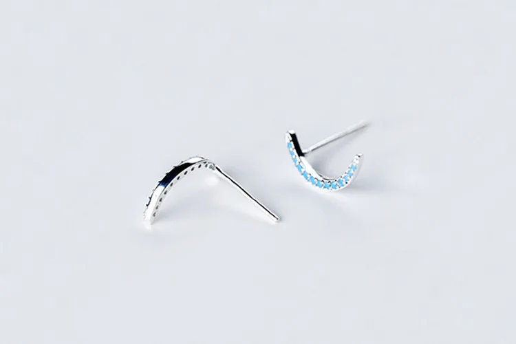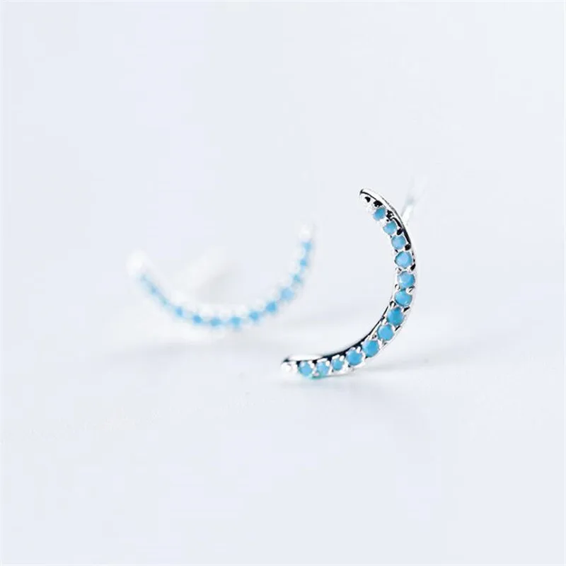 Новое поступление, корейский стиль, свежая Изысканная луна, серебро 925 пробы, покрытые сладким синим кристаллом, сережки-гвоздики SE924