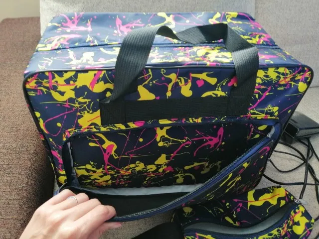 Идеальная сумка для швейной машины моего брата, остается местом для непрерывной работы, ткани и т. д. Вещь красивая, выглядит устойчивой, я очень доволен своей покупкой. Отправлено быстро.