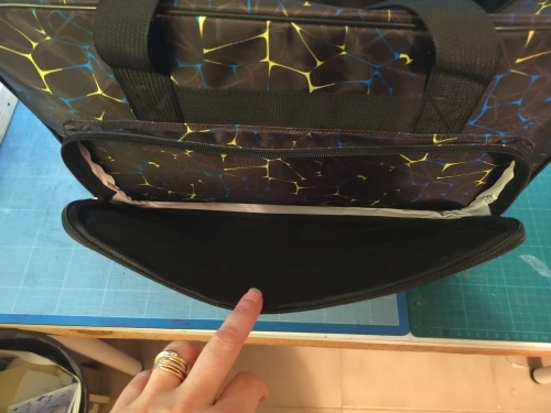 Доставка заняла чуть больше двух недель. Отличная сумка, красивая, качественная, прочная. Стандартная швейная машина поместилась, даже катушку с нитками не пришлось убирать. Сумка немного широкая, но зато можно ещё что-нибудь положить. Я заказом довольна, рекомендую. Большое спасибо продавцу.