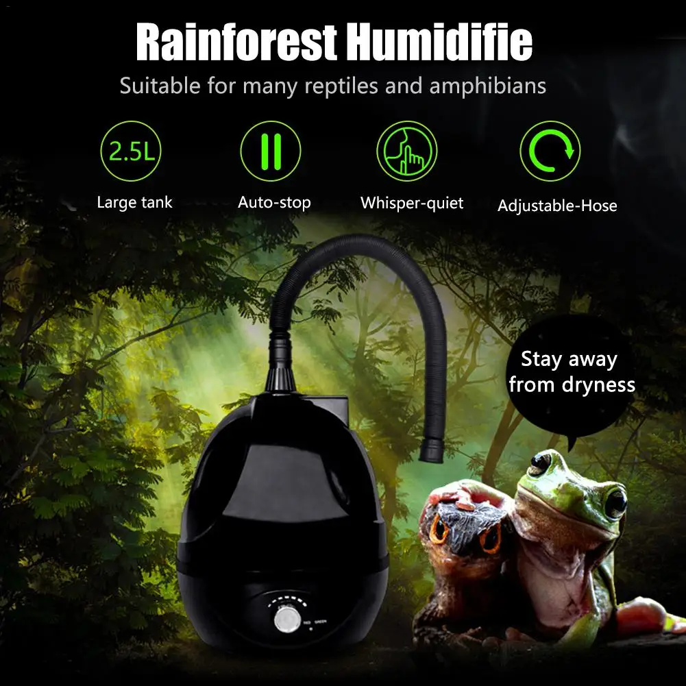 Точки пули:1. Увлажнитель тропического леса: подходит для многих рептилий и амфибий, в том числе: хамелеонов, черепах, ящериц, лягушек, отшельников, драконов бороды, геккона, змей и т. д.2 、 всю ночь туман дизайн, даже и тонкой туман: холодный туман увлажнитель может держать 2,5 литров (0,6 галлонов) воды, который может прослужить до 12-ти часов при слабом тумане.3. Автоматическая пламенная конструкция: когда вода будет измотана, машина автоматически выключится, чтобы сохранить ее в безопасности, красный светодиодный светильник включен, пожалуйста, отключите питание, когда вам нужно добавить воду.4. Бесшумный увлажнитель: ультразвуковой увлажнитель уменьшит шум, бесшумное увлажнение и не потревожит вашего питомца.5. Размер: около 20*14*23 см/7,87*5,51 * 9.06in, с телескопическим шлангом (40-150 см/15.74-59in) и 2 фиксированными присосками, широко используются в зоопарках, клетки, стеклянные террариумы, визуальные клетки, места обитания, аквариумы и т. Д.Информация:Название: увлажнитель в форме домашних животных увлажнитель для рептилий распылитель бесшумный Регулируемый для ландшафтного дизайна тропических лесов, Террариум для рептилий и т. д.Цвет: черныйРазмер: около 20*14*23 см/7,87*5,51 * 9.06inМощность: 10-35 Вт (регулируемая)Емкость: около 2,5лПереключатель ручки: регулируемый выход туманаФункция: бесшумный/без воды автоматическое отключение питанияСцена: широко используется в террариумах, клетках, стеклянных контейнерах, визуальных клетках, местах обитания, аквариумах и т. д.Инструкции по использованию:1 Снимите крышку в верхней части резервуара и Снимите резервуар с основания2. Инвертируйте резервуар для воды, откройте крышку входа воды и заполните его водой и затяните крышку входа воды.3. Установите резервуар для воды на основание, вставьте шланг и затяните4. Подключите питание и поверните ручку по часовой стрелке, чтобы выбрать желаемую скорость.5. Используйте присоске, чтобы закрепить шланг в правильном положении.Примечание: При установке или добавлении воды выключите питание!Особенности:1. Увлажнитель тропического леса: подходит для многих рептилий и амфибий, в том числе: хамелеонов, черепах, ящериц, лягушек, отшельников, драконов бороды, геккона, змей и т. д.2. Всю ночь туман дизайн, даже и тонкой туман: холодный туман увлажнитель может держать 2,5 литров (0,6 галлонов) воды, который может прослужить до 12-ти часов при слабом тумане.3. Автоматическая пламенная конструкция: Когда вода будет измотана, машина автоматически выключится, чтобы сохранить ее в безопасности, красный светодиодный светильник включен, пожалуйста, отключите питание, когда вам нужно добавить воду.4. Бесшумный увлажнитель: ультразвуковой увлажнитель уменьшит шум, бесшумное увлажнение и не потревожит вашего питомца.5. Размер: около 20*14*23 см/7,87*5,51 * 9.06in, с телескопическим шлангом (40-150 см/15.74-59in) и 2 фиксированными присосками, широко используются в зоопарках, клетках, стеклянные террариумы, визуальные клетки, места обитания, аквариумы и т. Д.Список:1 * увлажнитель1 * шланг