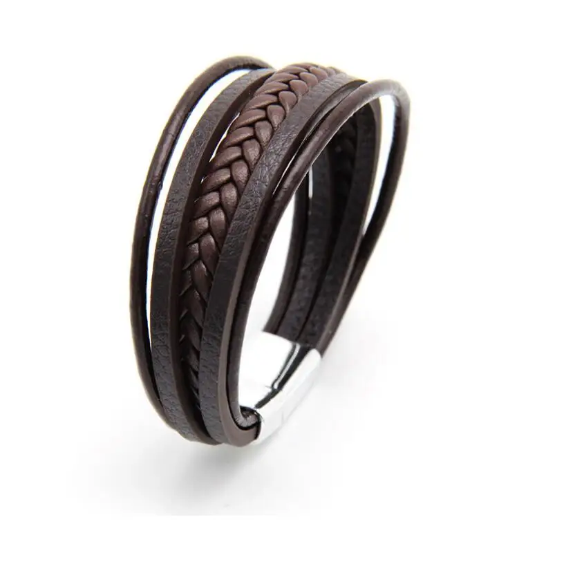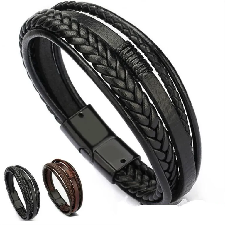 Браслет мужской кожаный с магнитной застежкой, многослойное Ювелирное Украшение с плетением из воловьей кожи