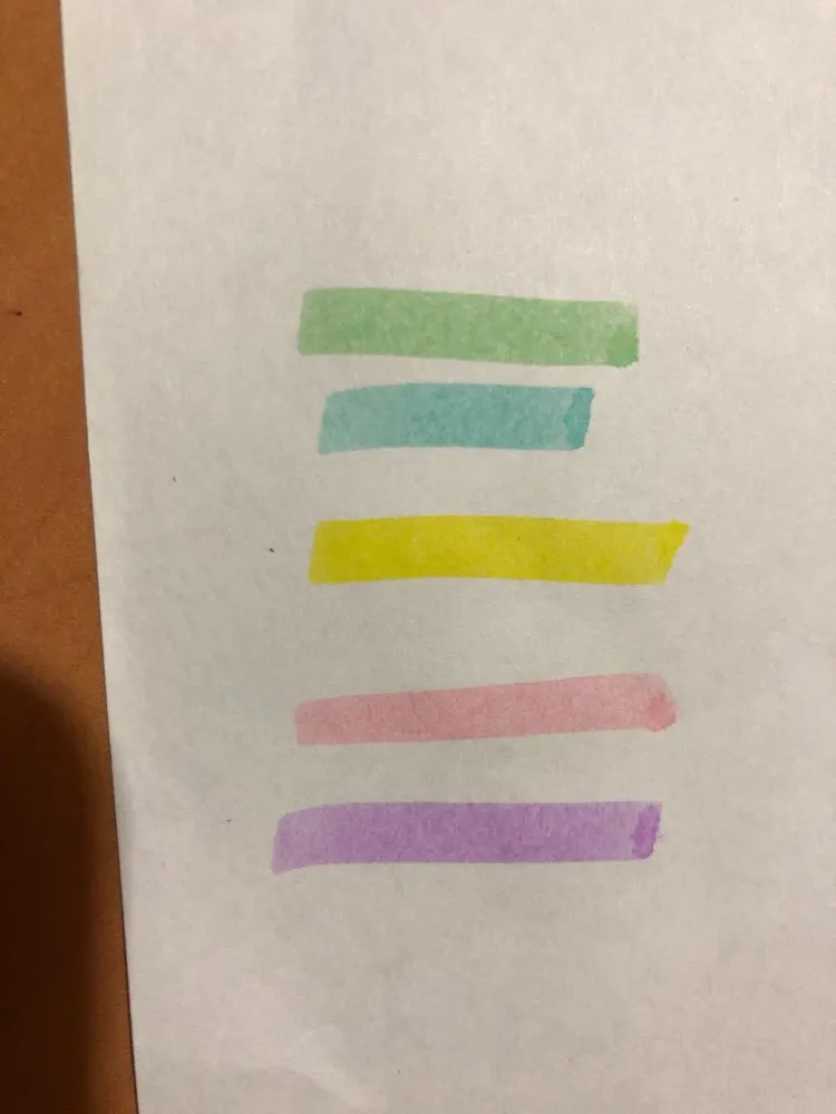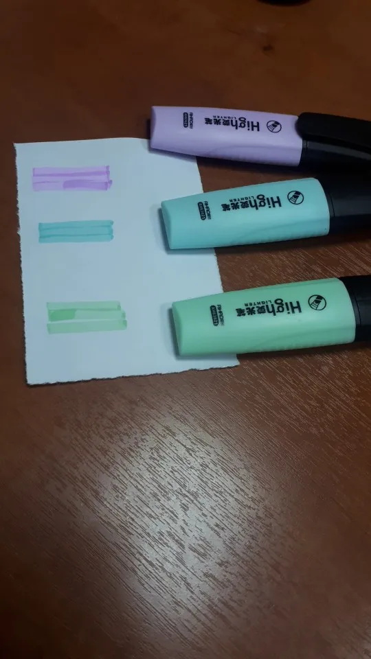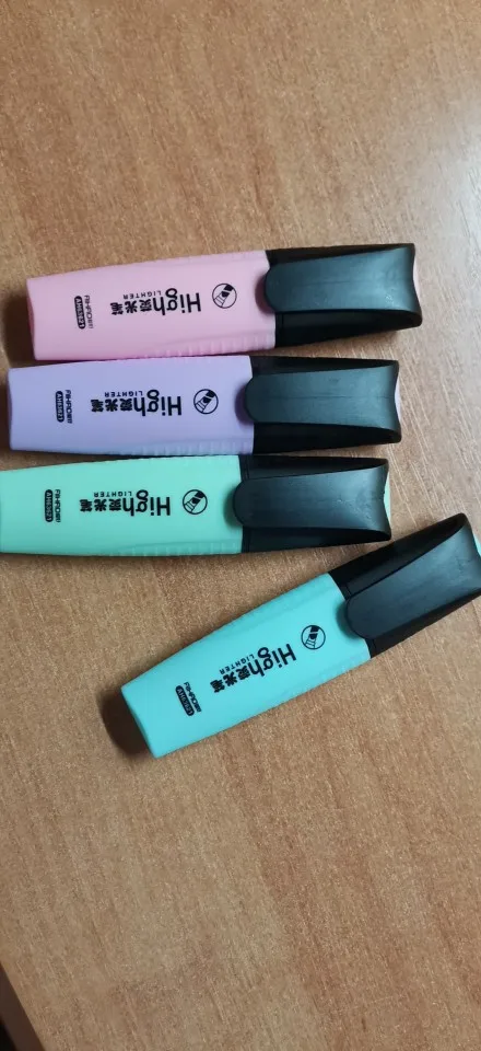 Текстовыделители хорошие. Посылка шла не долго. Текстовыделители смазывают ручку и наконечник марается. После можно очистить наконечник, порисуя на бумаге. Цвета хорошие! Пастельные, я брала все кроме розового. Мне очень нравится!