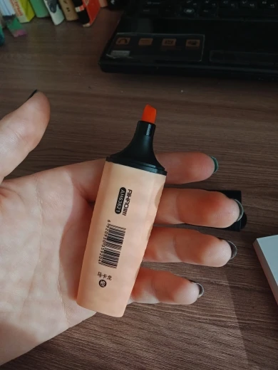Этот хайлайтер идеально подходит для вашей руки, цвет соответствует описанию-немного оранжевый, но с оттенком лосося. Я сделал фотографию на переработанной бумаге.