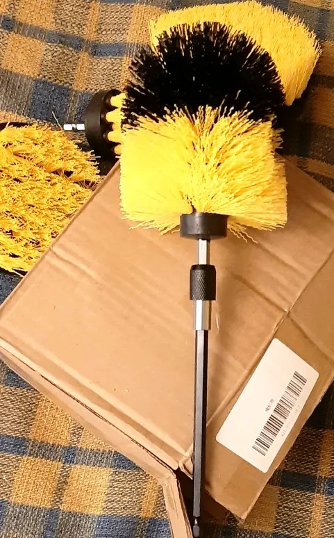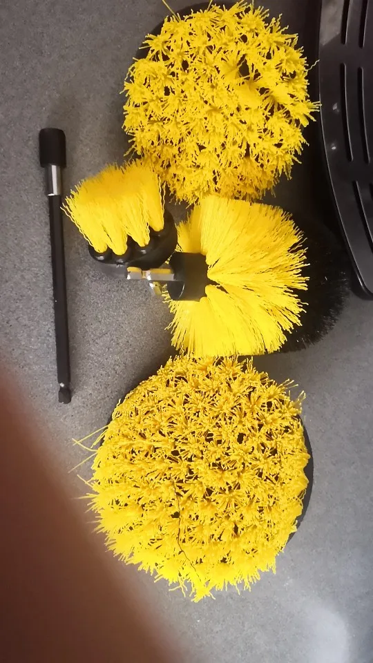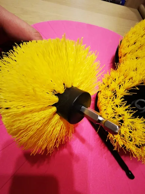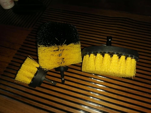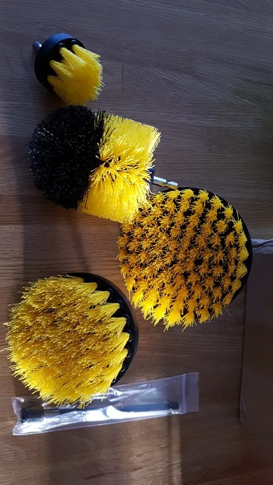 щетки просто огонь! достаточно жёсткие, плитку отмывают на раз. Муж отмыл автомобильный аккумулятор за 5 мин до состояния нового )). Мы оба довольны.