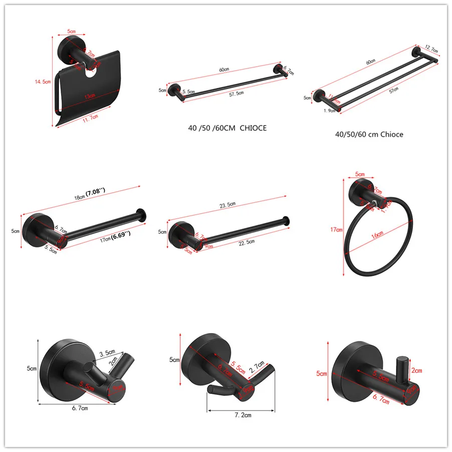 Современный набор черного цвета из нержавеющей стали 304, вешалка для полотенец, держатель для бумажных полотенец, крючок, аксессуары для ванной комнаты