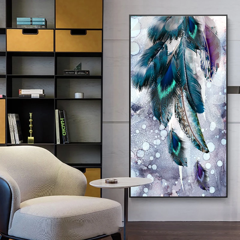 Современные декоративные картины Голубое перо настенные художественные картины для гостиной холст печать большой размер абстрактные куадросы украшения