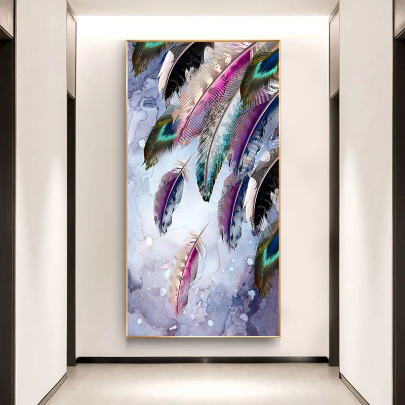 Современная Картина на холсте Абстрактная винтажная Настенная картина с перьями для гостиной постеры для крыльца Декор для дома