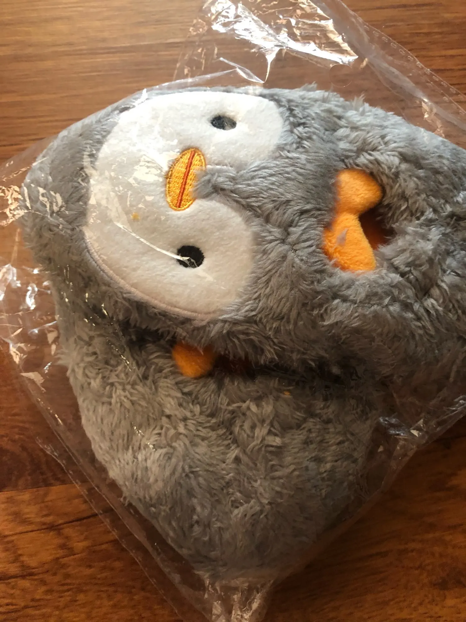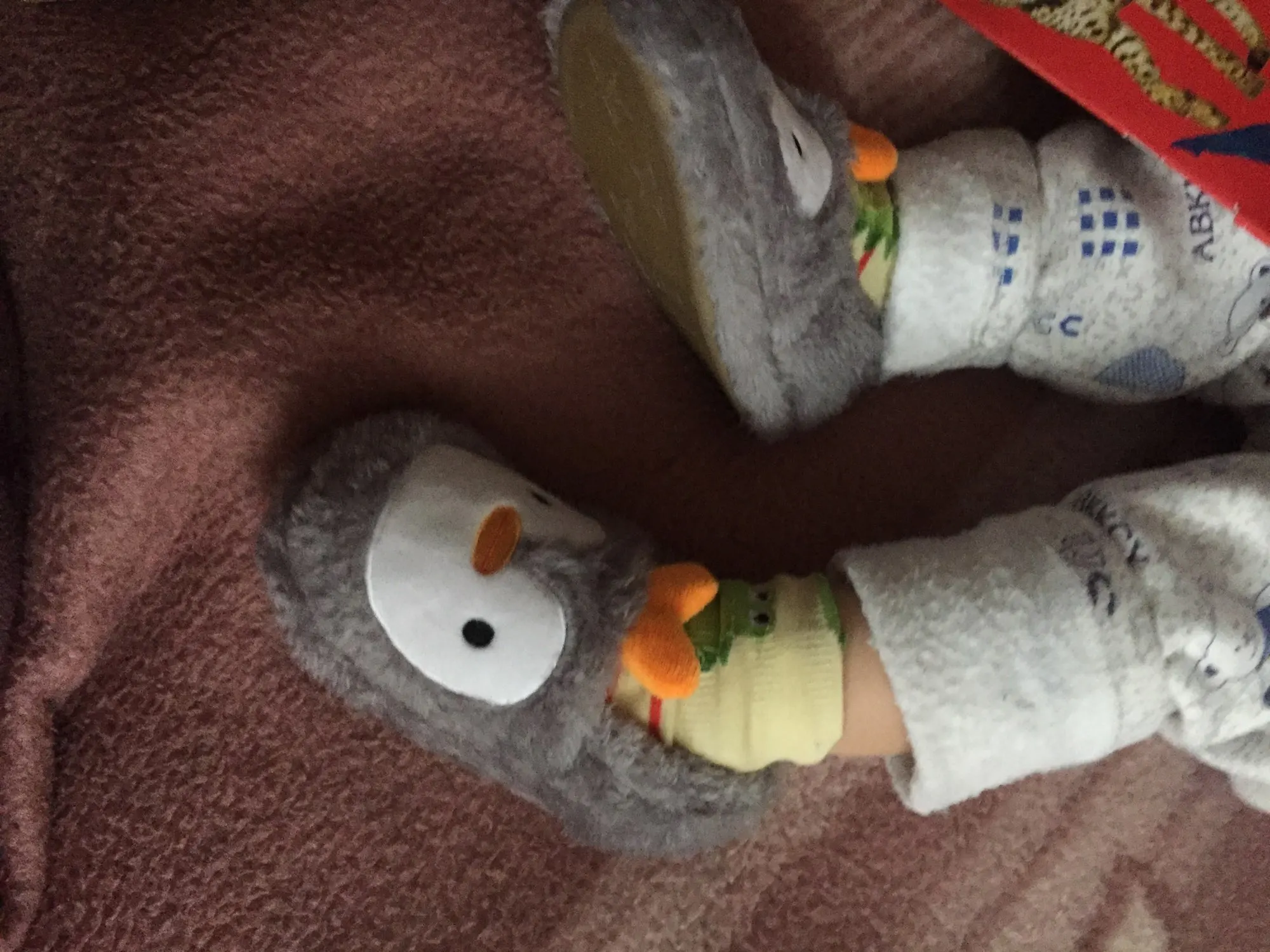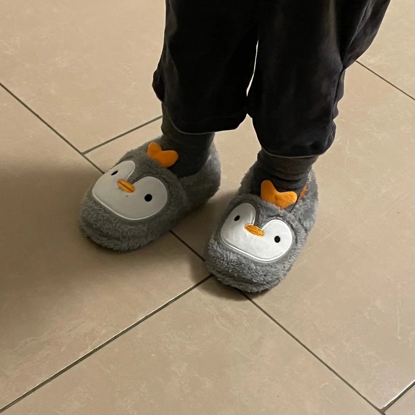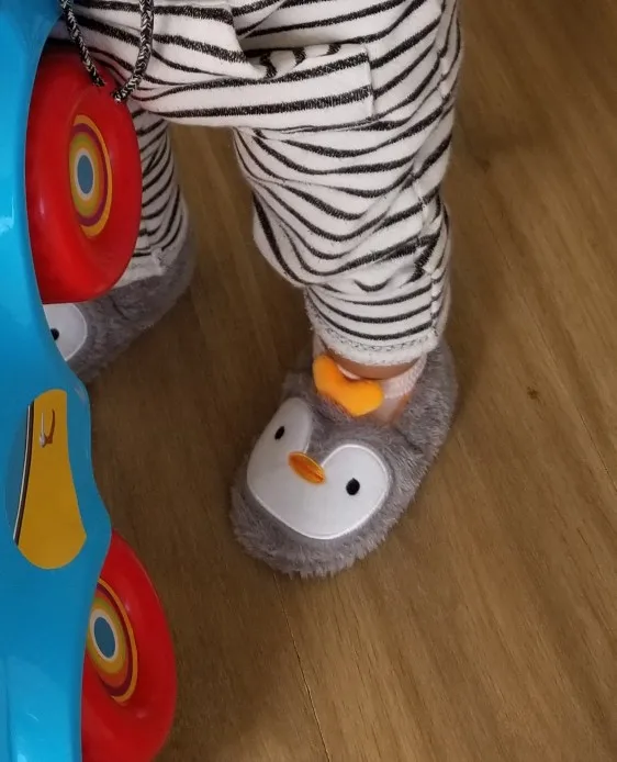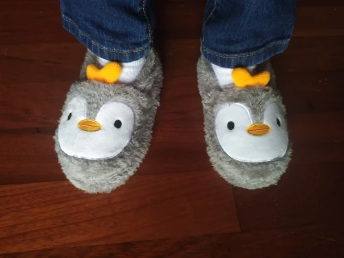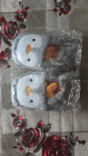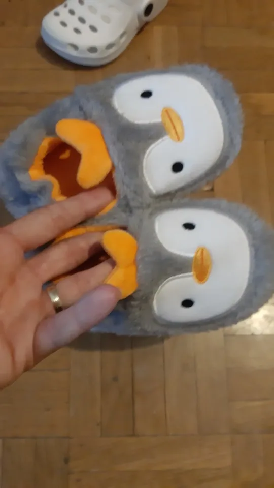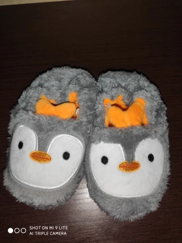 Прекрасні, пухнасті тапочки-пінгвінчики. Весь опис відповідає товару на зображенні. Без запаху, підошва гнеться, резинова, на плитці не ковзають. Брала сину розмір М, ще дуже великий на ніжку 14 см. Треба було брати менший але нічого, якраз буде на 2 рочки. В Україну прийшли за 2,5 тижні.