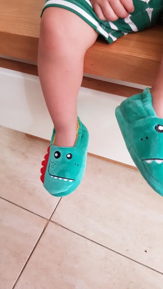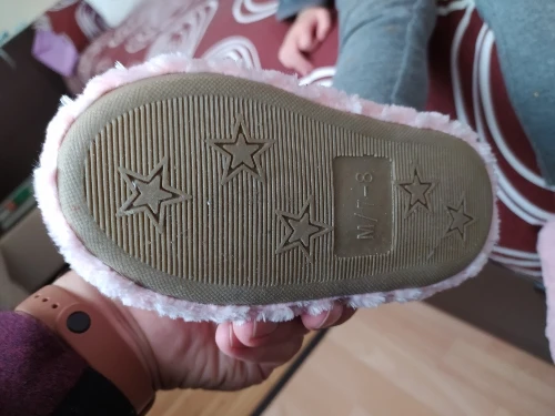 Отличные тапочки, соответствуют описанию, выглядят как на фото. тонкая резиновая подошва хорошо гнётся не препятствует подвижности стопы. достаточно "пухлые" и теплые, для прохладных домов, у нас +19, нога у ребенка в них горячая, наверно отложим на зиму. это первые тапочки с али, которые мне понравились, а я заказывала еще 3 разных варианта до этого. с ноги не сваливается. взяла на европейский 23 размер, есть небольшой запас для роста, но не слишком
