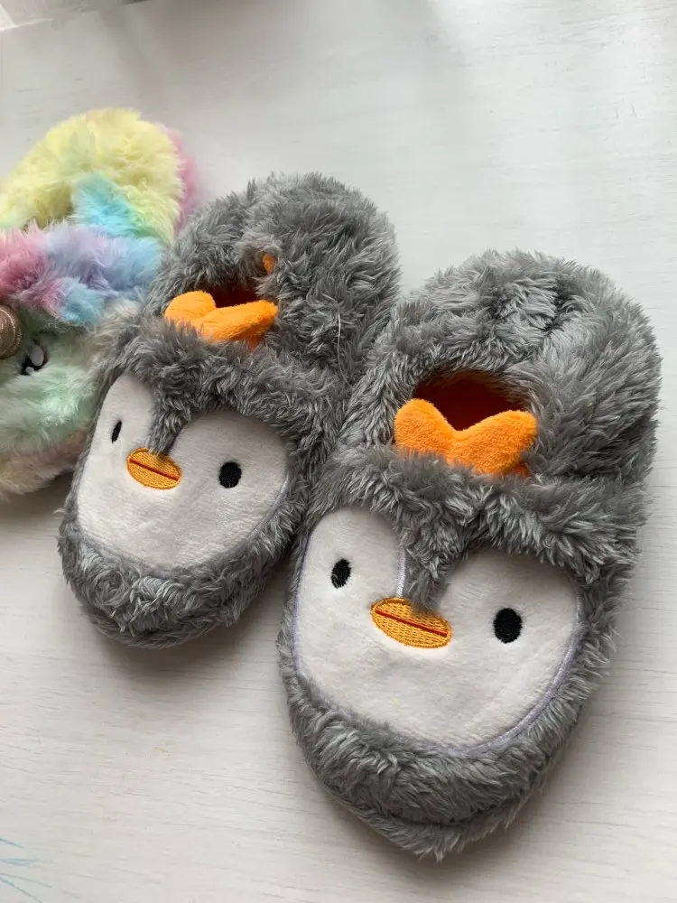 Тапочки детские зимние, теплые, с пингвинами, для мальчиков и девочек, 2021