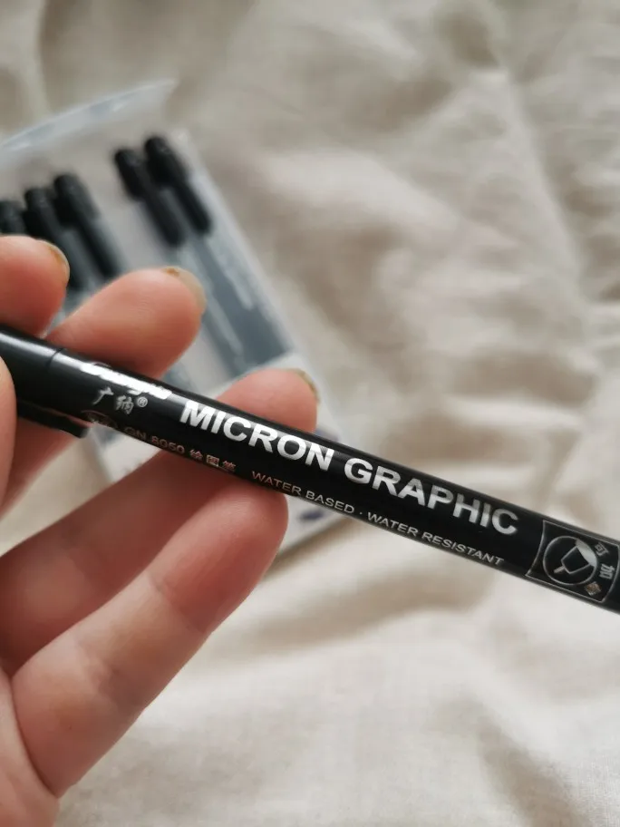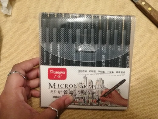 Хороший продавец. Микрон ручки очень хорошие и с точными линиями. Коробка для ручек очень хорошая, либо с твердым пластиком. Мне очень нравятся эти ручки. Я рекомендую ручки и продавца. Очень хорошо Спасибо!