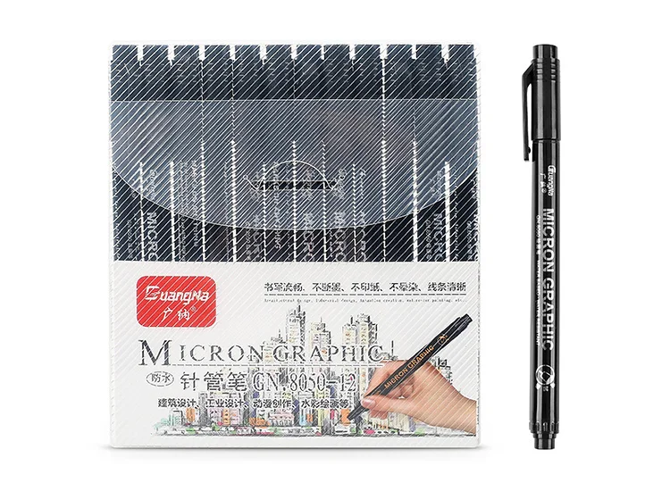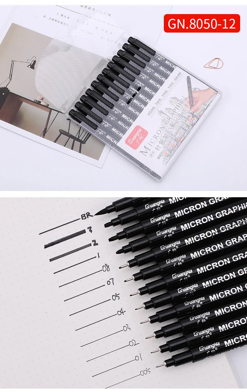 Водный маркер PenTip, 12 шт., водостойкий, устойчивый к выцветанию, водный маркер черного цвета, набор ручек для манги