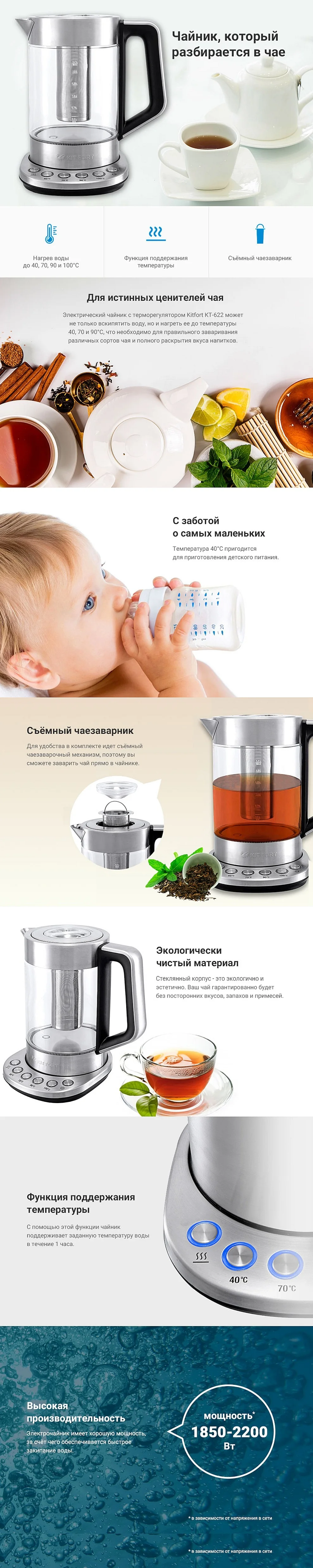 Шикарный чайник! Вода закипает быстро, кипит недолго, красивая подсветка. А главное - есть разные температуры и ситечко ( можно сразу заварить чай или травы). Спасибо большое продавцу! Курьер доставил надом))