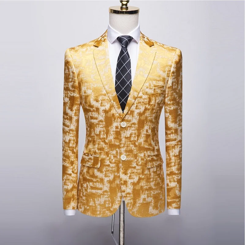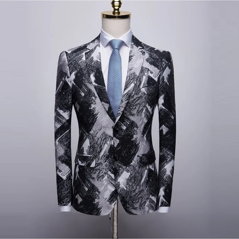 Костюм-смокинг мужской из двух предметов, облегающий, с принтом