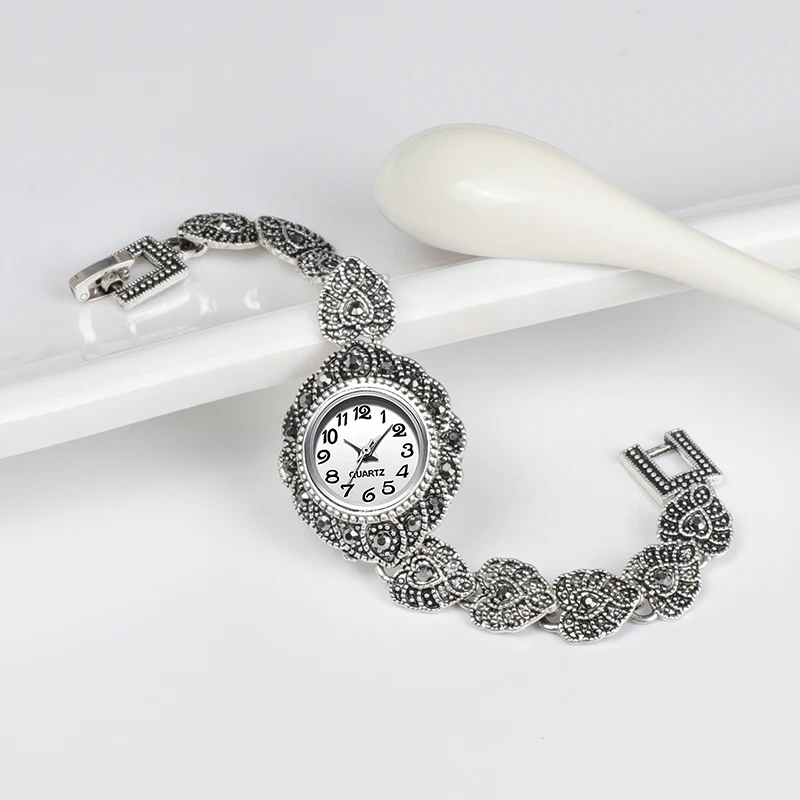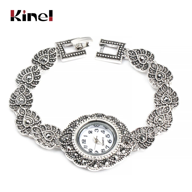 Kinel Новинка 2021 модные дизайнерские продвижение Античные тибетские серебряные браслеты Хрустальный Браслет наручные часы для женщин винтажные ювелирные изделия