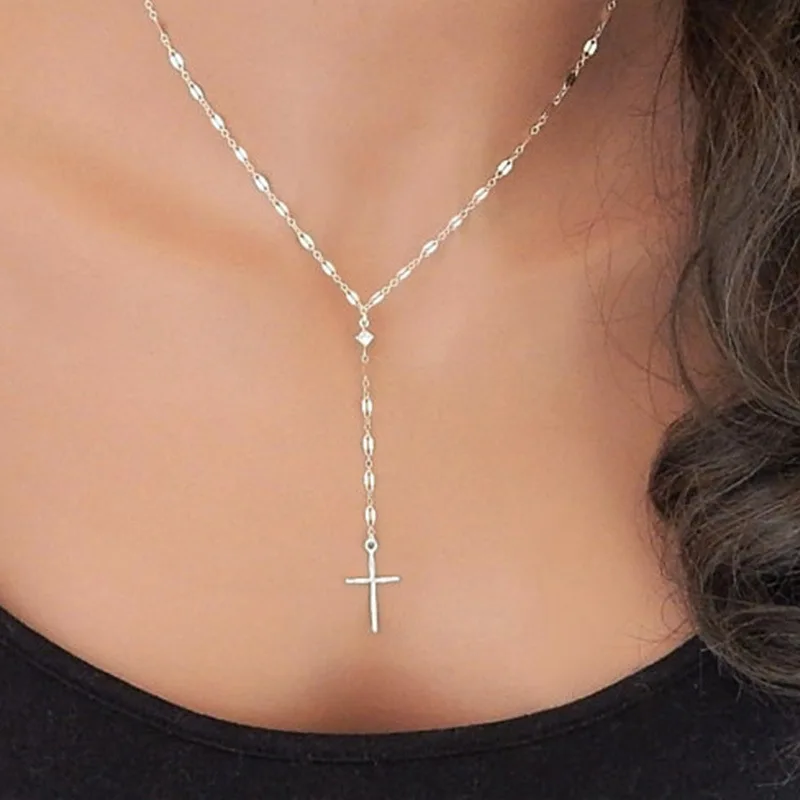 Ожерелье с подвеской в виде Креста Иисуса, Золотая цепочка, длинное ожерелье для женщин, Религиозные христианские ювелирные изделия, четки, бусы, ожерелье, праздничные подарки
